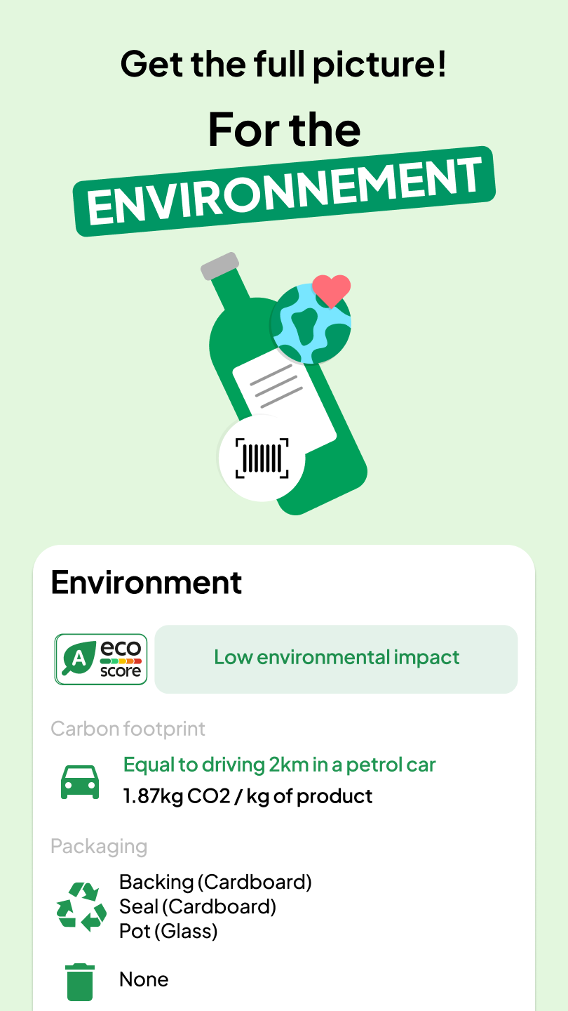 * CO2 levels and Eco-Score: find the environmental impact of food