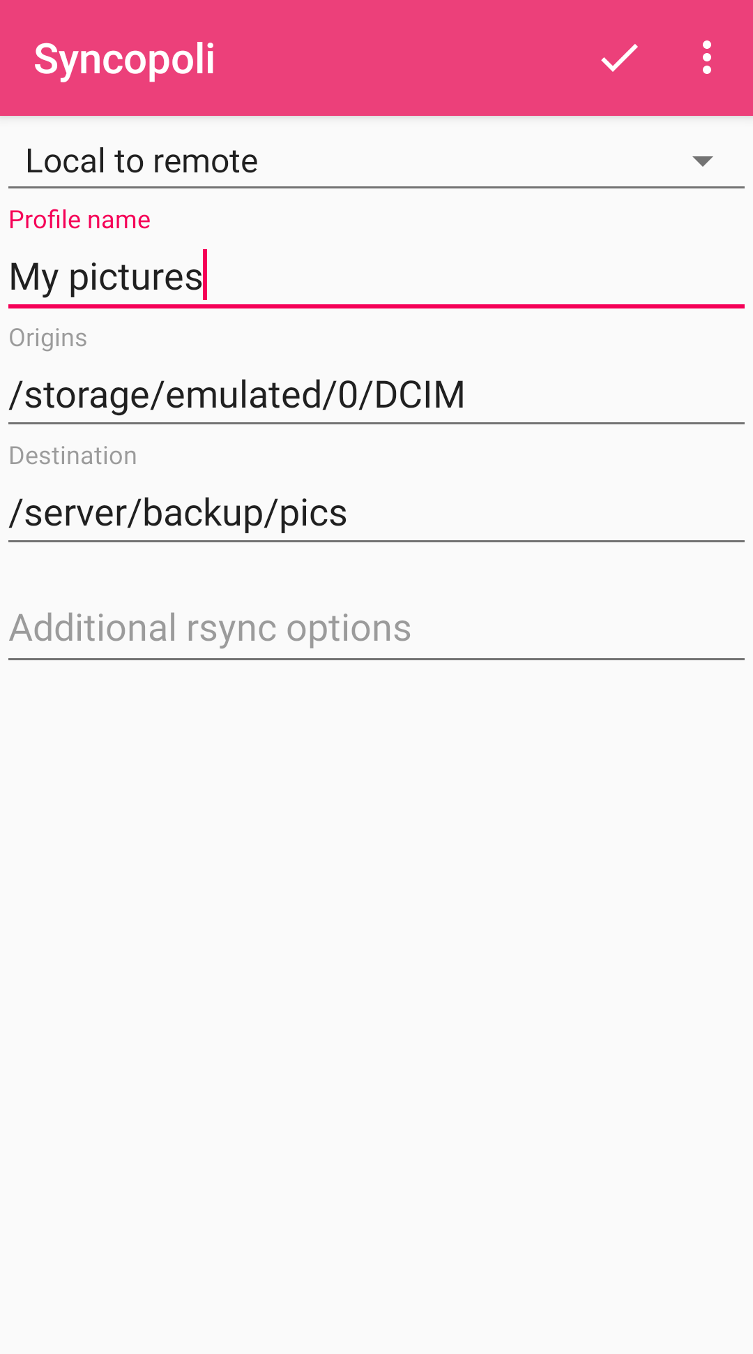 An rsync client that allows you to backup files/directories on your phone to your remote server.