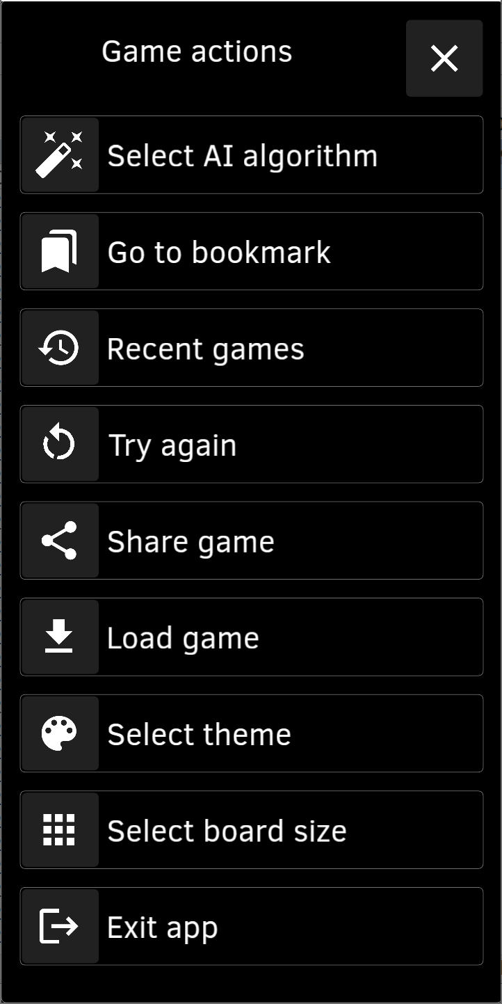 v.1.13.2. * Select board size from 3x3 up to 8x8, and not 4x4 default classic size only.