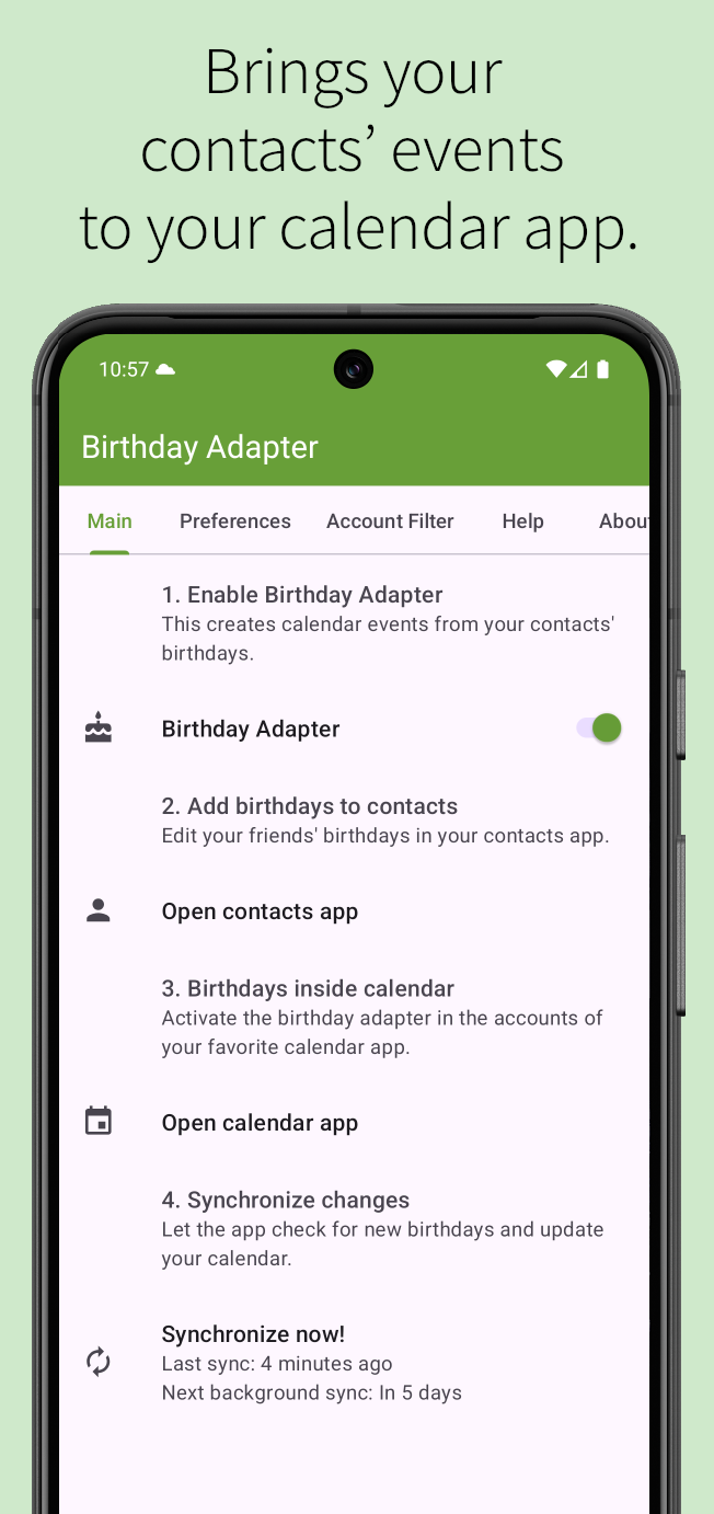 Keywordsbirthday calendar, birthday adapter, calendar integration, birthdays, events, special dates