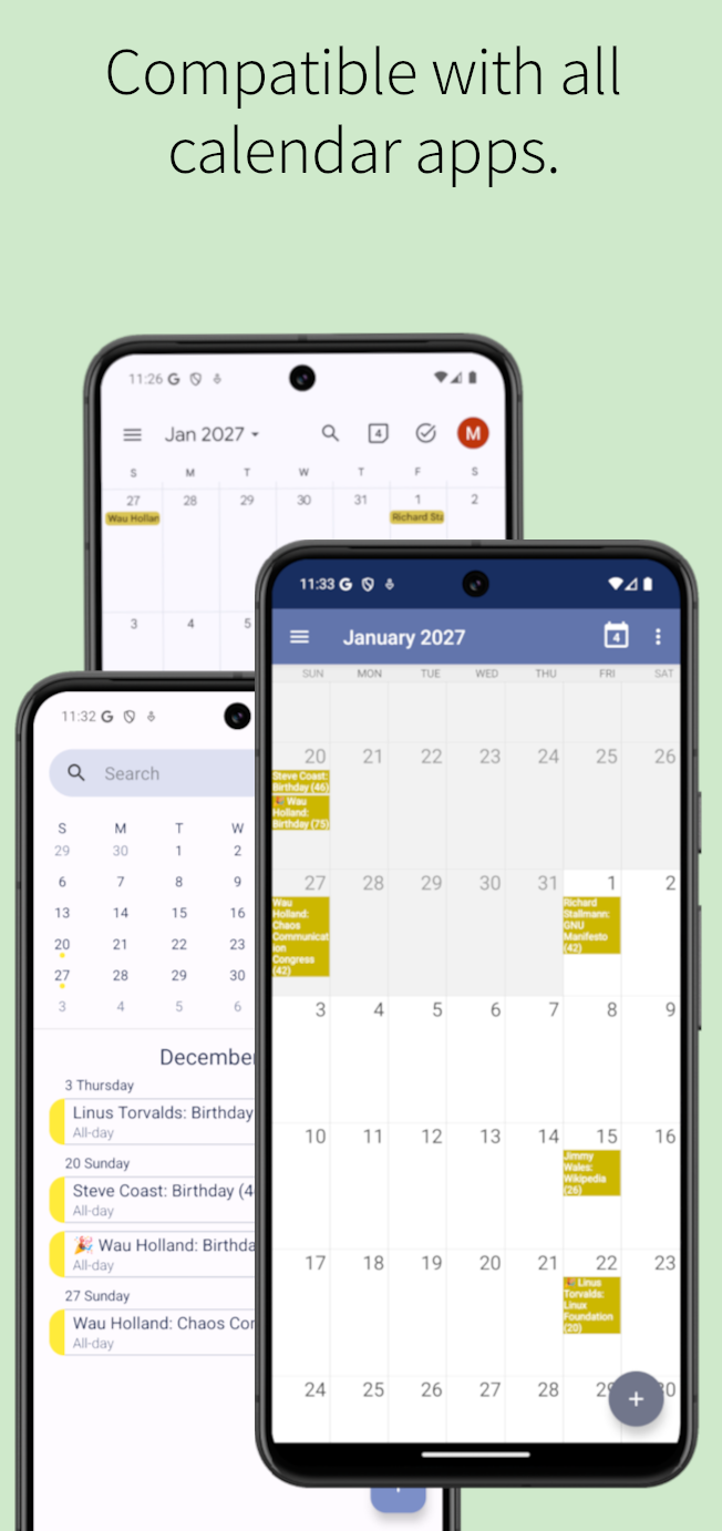 To my knowledge, this is the first implementation that implements birthdays as a calendar displayed in Android's Calendar app.