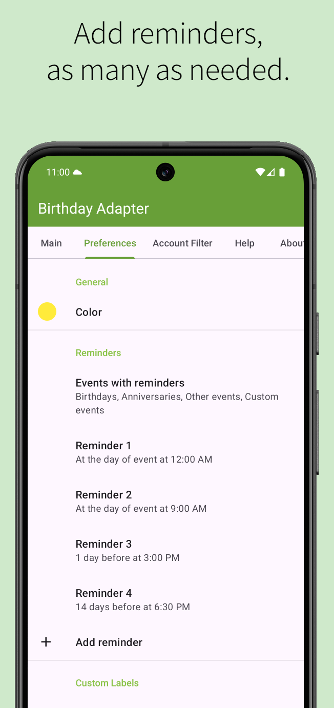 • Chose which events will have reminders