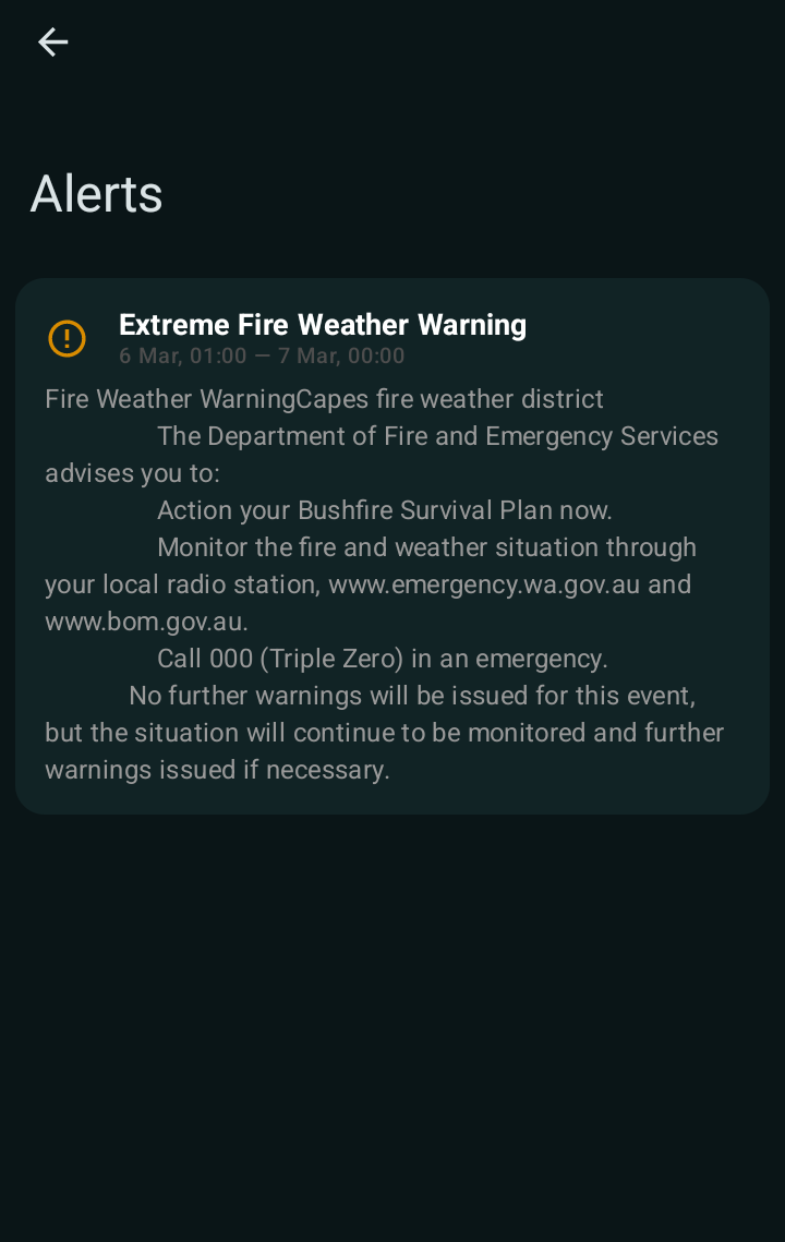 Sources- In all flavors: Open-Meteo, ANAM-BF, Bright Sky (DWD), DCCMS, DMN, DWR, EMI, FOSS Public Alert Server, GMet, IGEBU, INM, Mali-Météo, Météo Benin, Météo Tchad, Météo Togo, Mettelsat, MSD, Pirate Weather, Recosanté, SMA (Seychelles), SMA (Sudan), SSMS