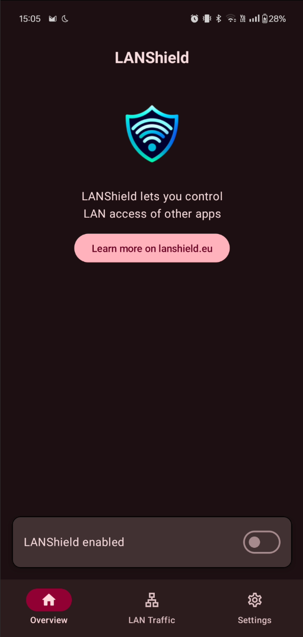 Note: LANShield uses the VpnService API to create a local virtual VPN interface. It does not establish any external VPN connection.