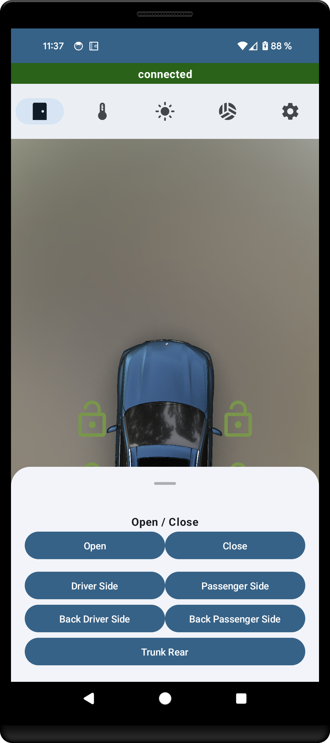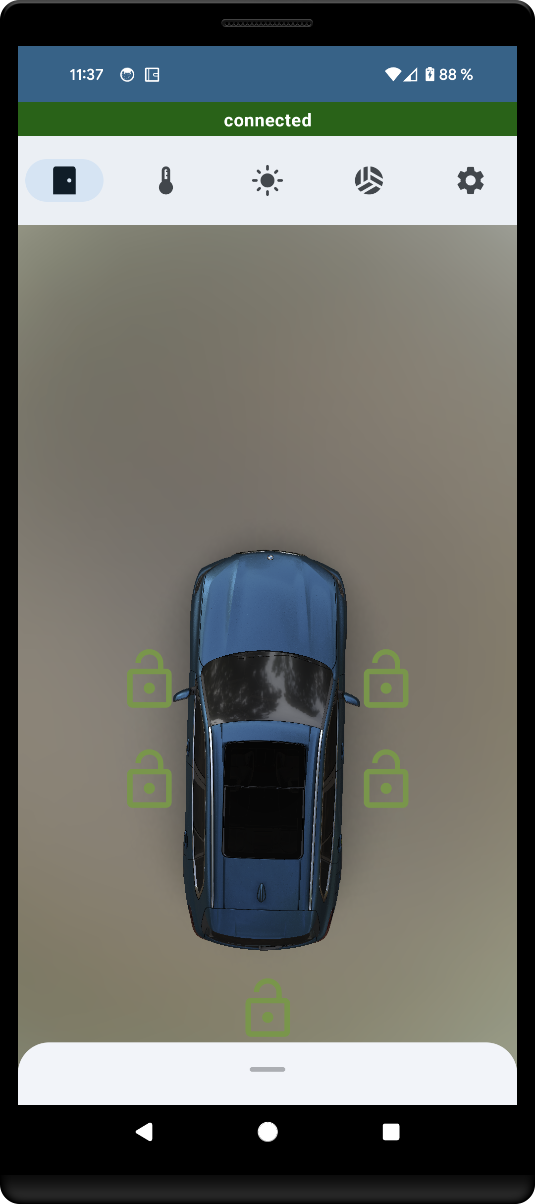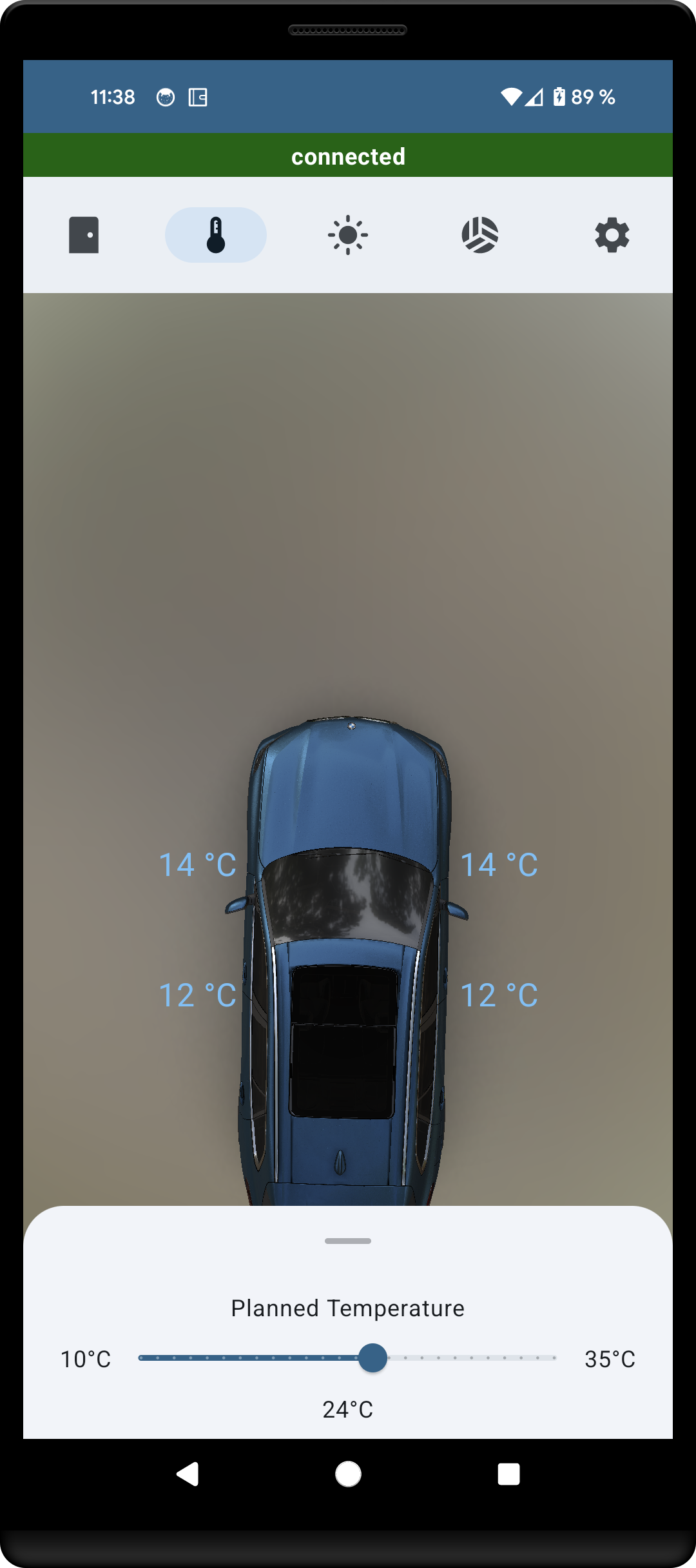 The KUKSA Companion App demonstrates the capabilities of the Android SDK to connect to a vehicle with an integrated KUKSA Databroker, read data and interact with the actuators of the vehicle. The KUKSA framework is based on the COVESA Vehicle Signal Specification (VSS).