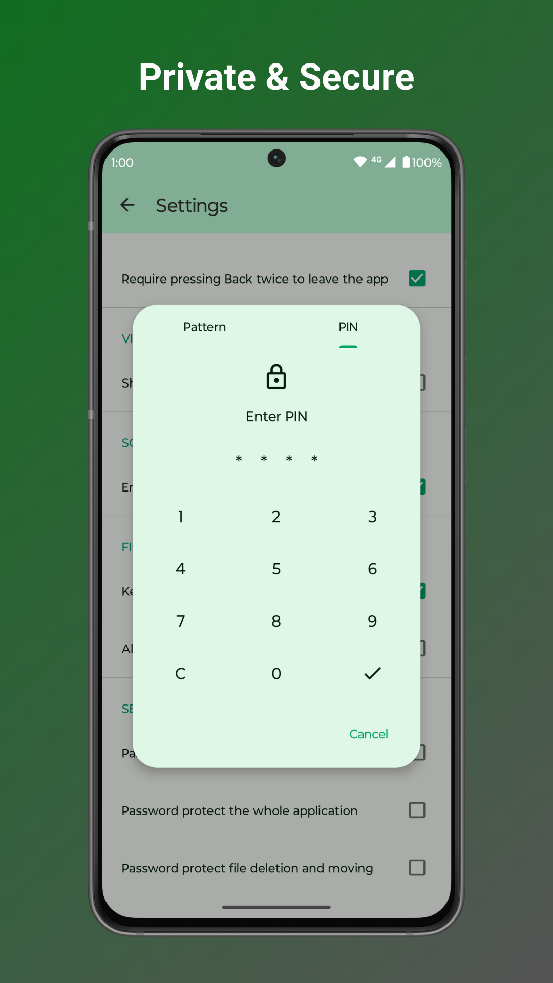 • Secure sensitive files with password, pattern, or fingerprint locks for hidden items or the entire app.
