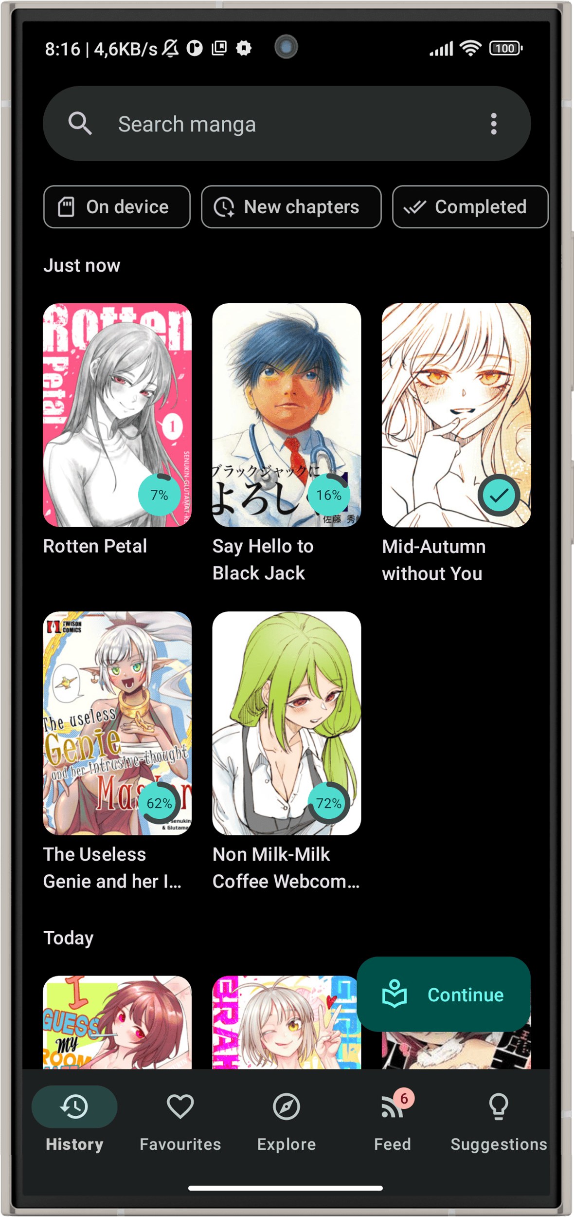 - Notifications about new chapters with updates feed, manga recommendations (with filters)