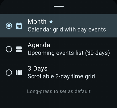 Material You with dynamic theming. Home screen widgets. Full-text search across all events. Per-event timezone for travel.