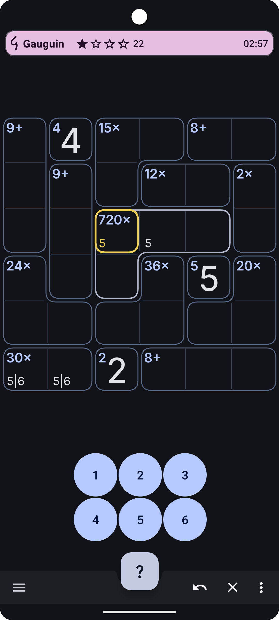Gauguin is a Sudoku-like game where you solve grids via calculation and logic.
