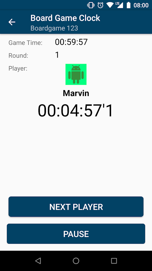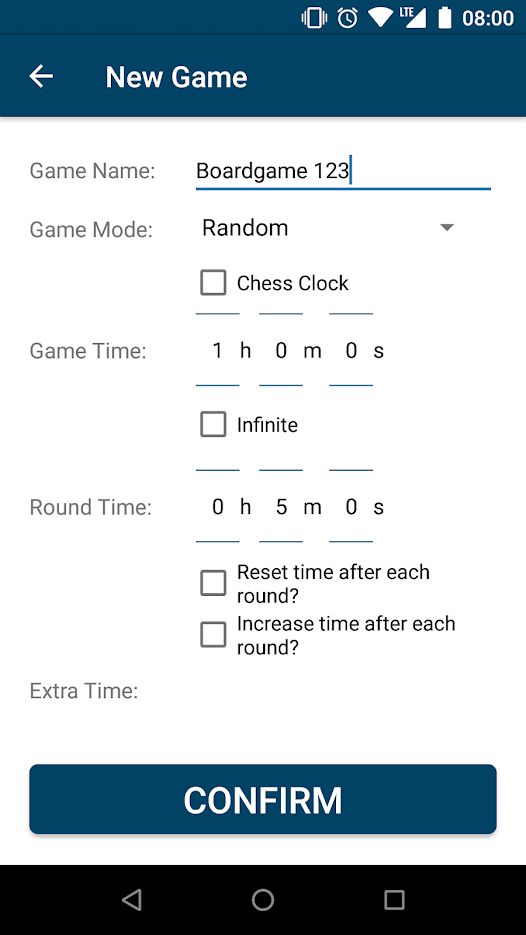 The app offers different modes depending on the game that is played. If the game is round based players and round times can be continued. The app tracks the time that the player needs in each round and alerts the player if he or she takes too much time.