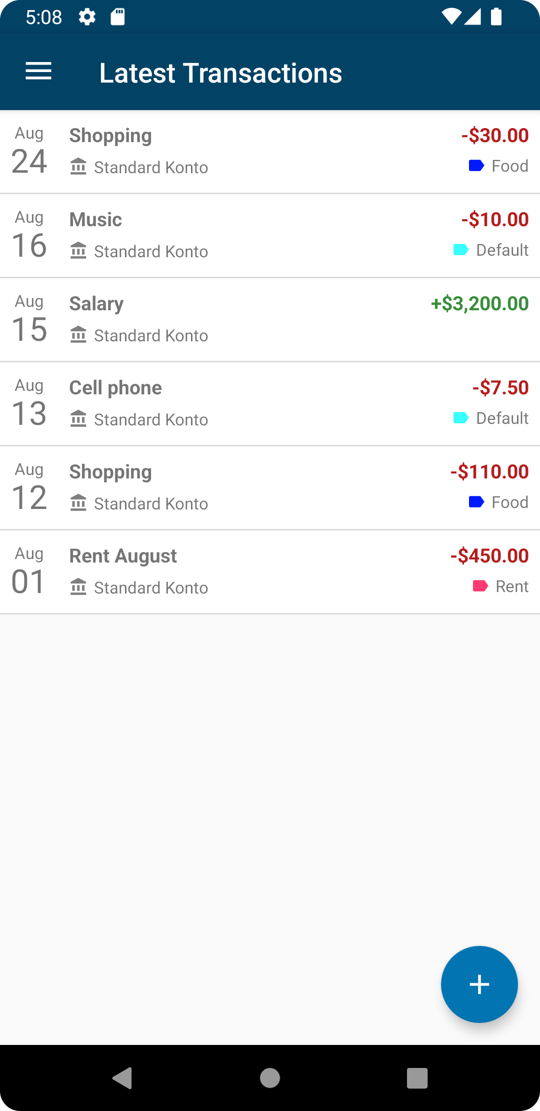The privacy friendly Finance Manager helps you keep track of your income and expenses.