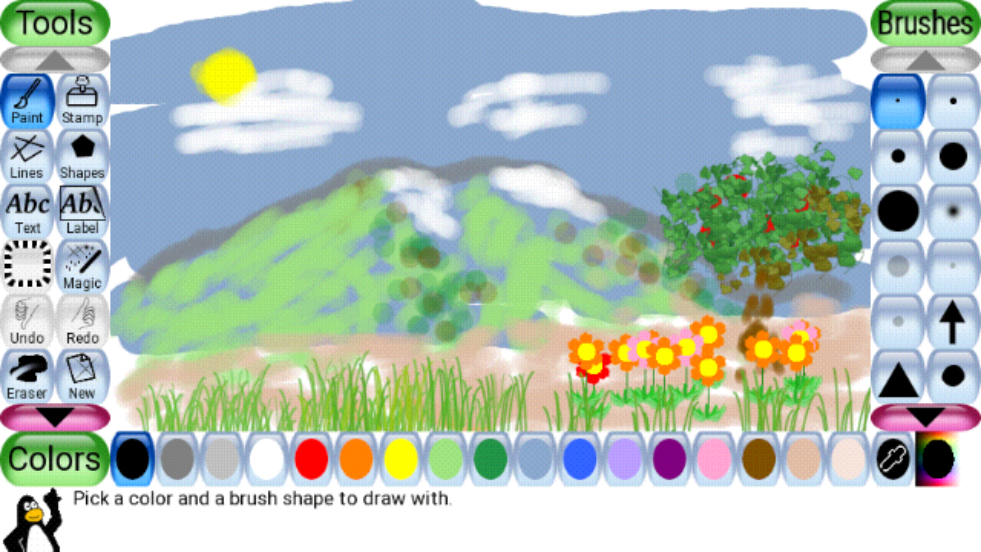 Tux Paint is a free, award-winning drawing program for children ages 3 to 12 (for example, preschool and K-6). Tux Paint is used in schools around the world as a computer literacy drawing activity. It combines an easy-to-use interface, fun sound effects, and an encouraging cartoon mascot who guides children as they use the program.