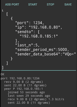 Features:* Binding UDP socket on specified port and exchanging traffic between all known peers
