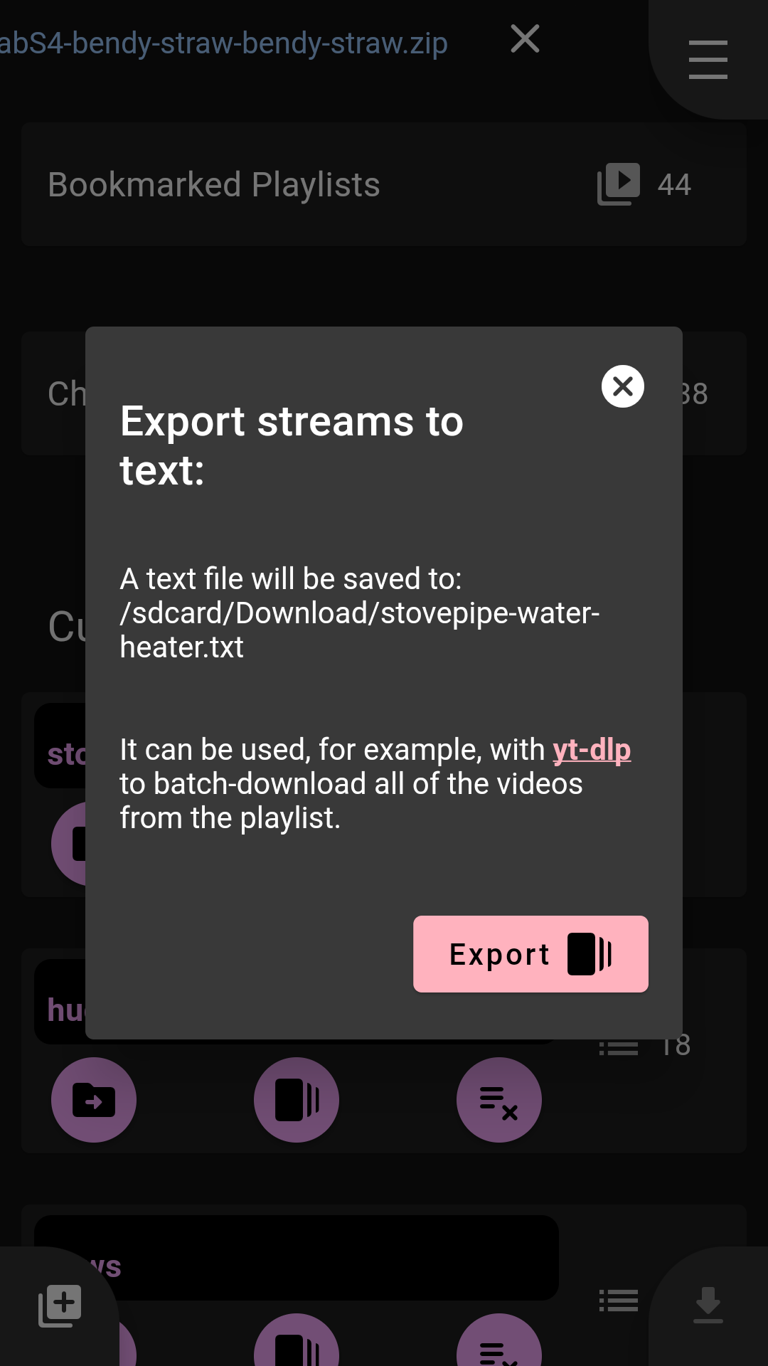- Export playlist as raw text, for example to be used with yt-dlp