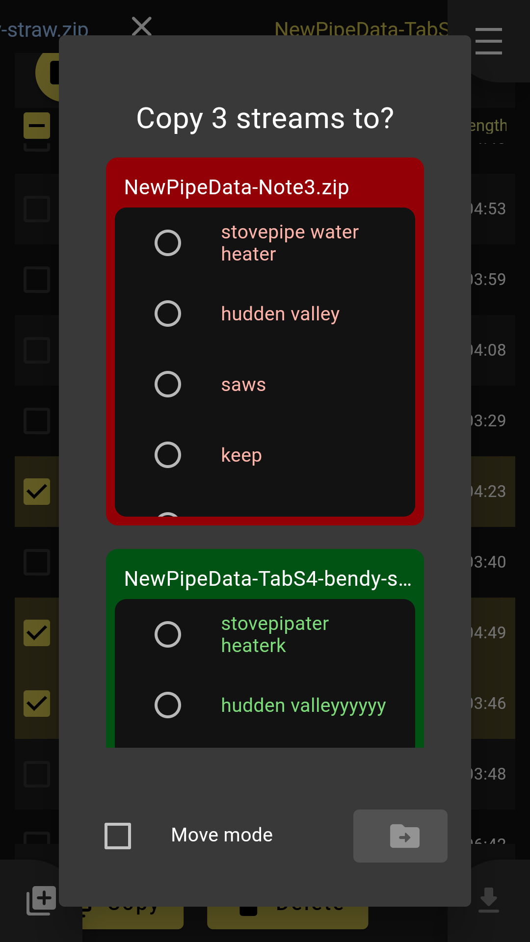 - Delete Copy Move streams from one playlist to another