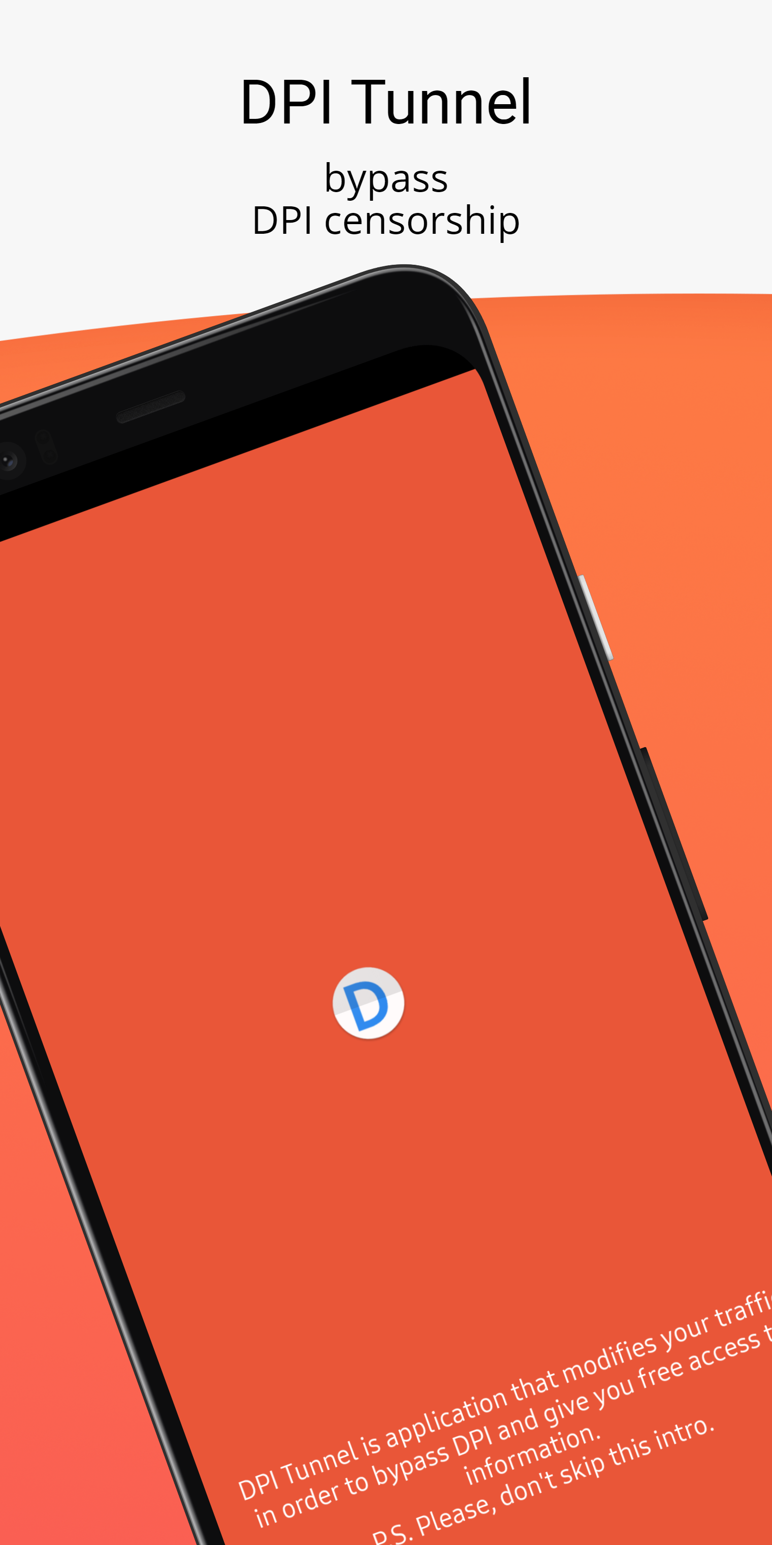 DPITunnel for Android is active DPI circumvention utility, that works only on your phone and doesn’t send your traffic to third-party servers, respecting your privacy and do not slowing down your internet connection. It establishes a transparent proxy server on your phone and starts local VPN server, where are DPI circumvention tricks applying.
