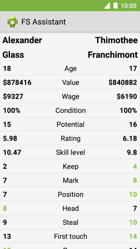 This application lets you to view your club's players list easily and compare them by any attribute.
