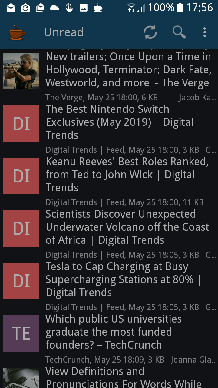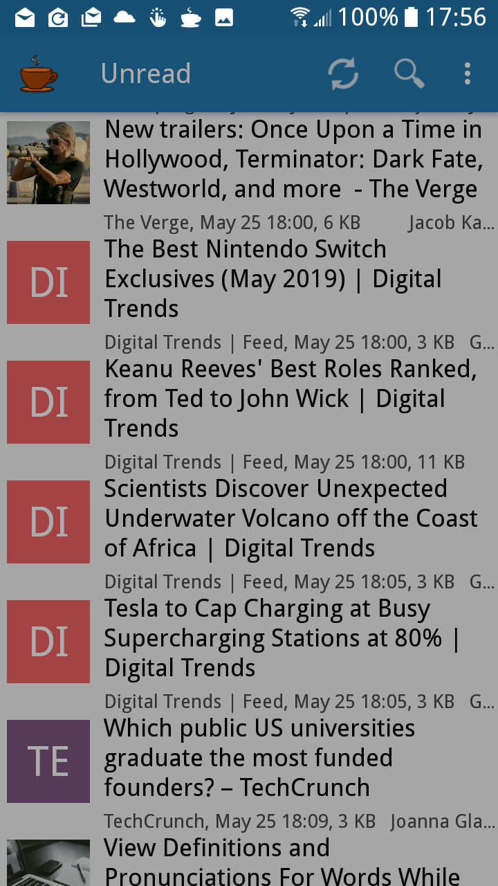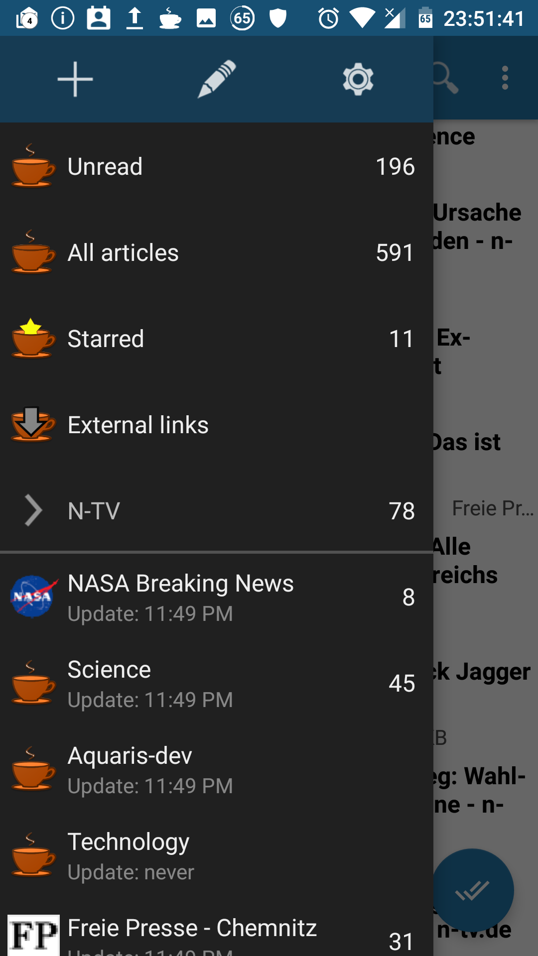 - important: this app does NOT synchronize with online news feed readers (i.e. Feedly),