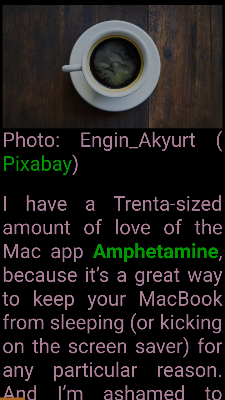 - neat ideas: non-hyperlinked article headers won't interfere with Your fingers any more ;) ; scrolling article pages by 90% of their height can make reading less confusing = more comfortable,