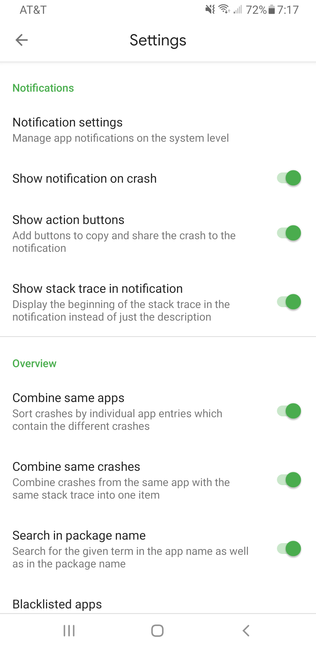 - Fix blacklisted apps' crashes being saved