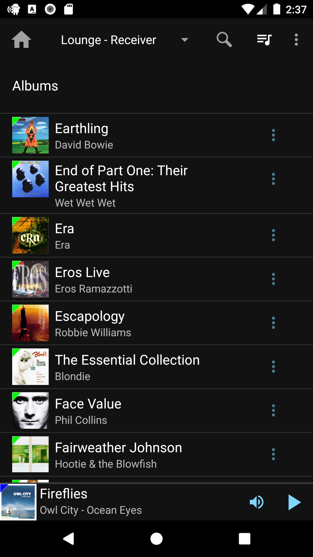 • Browse the library by album artist, all artists, composers, album, genre, year, playlist, favorites, or new music