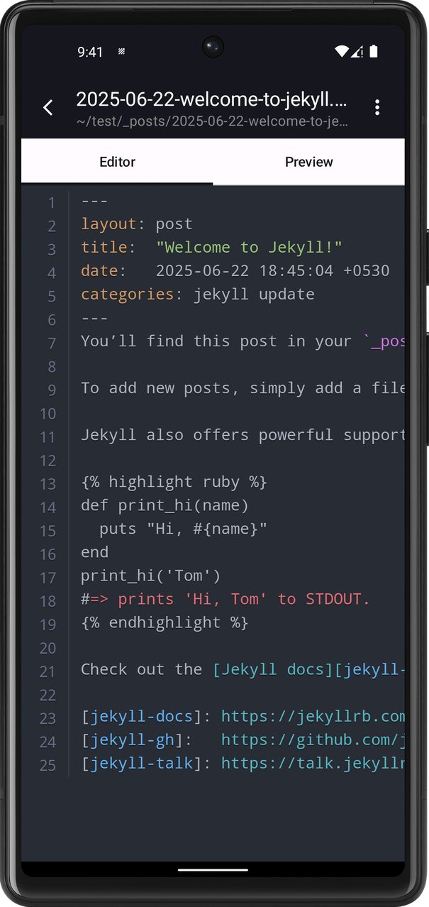 Build, preview, and publish your Jekyll based websites right from your device.