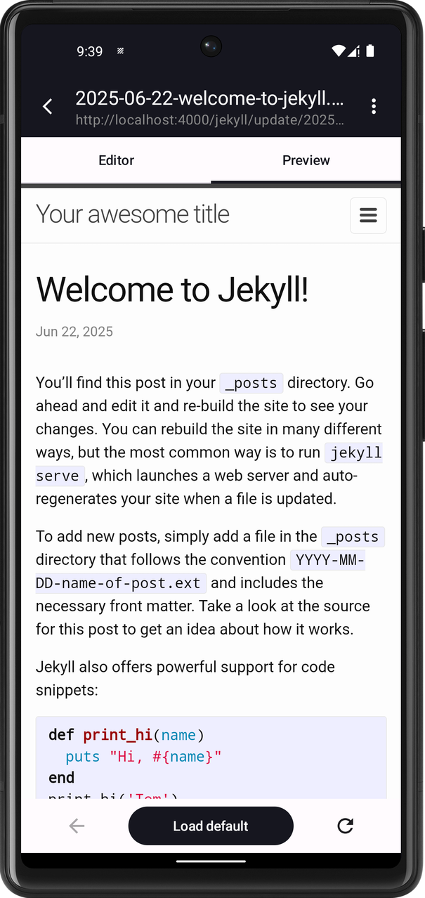 Make quick edits to your Jekyll site on the go in a mobile-friendly interface.