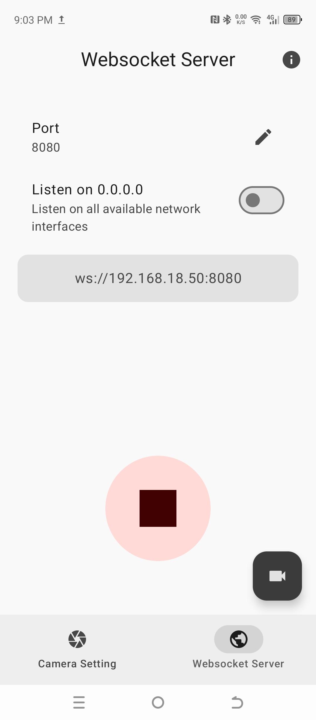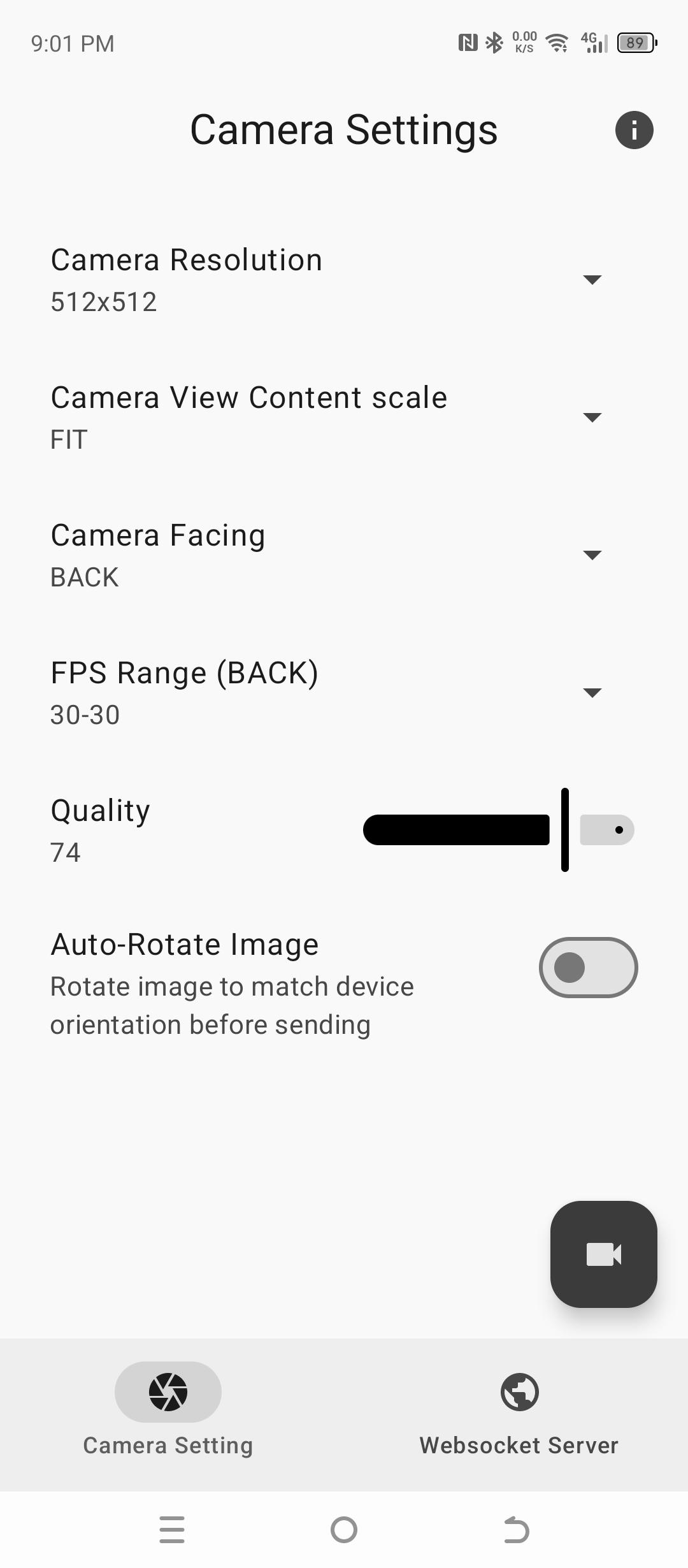 Access Android camera via Websocket client API