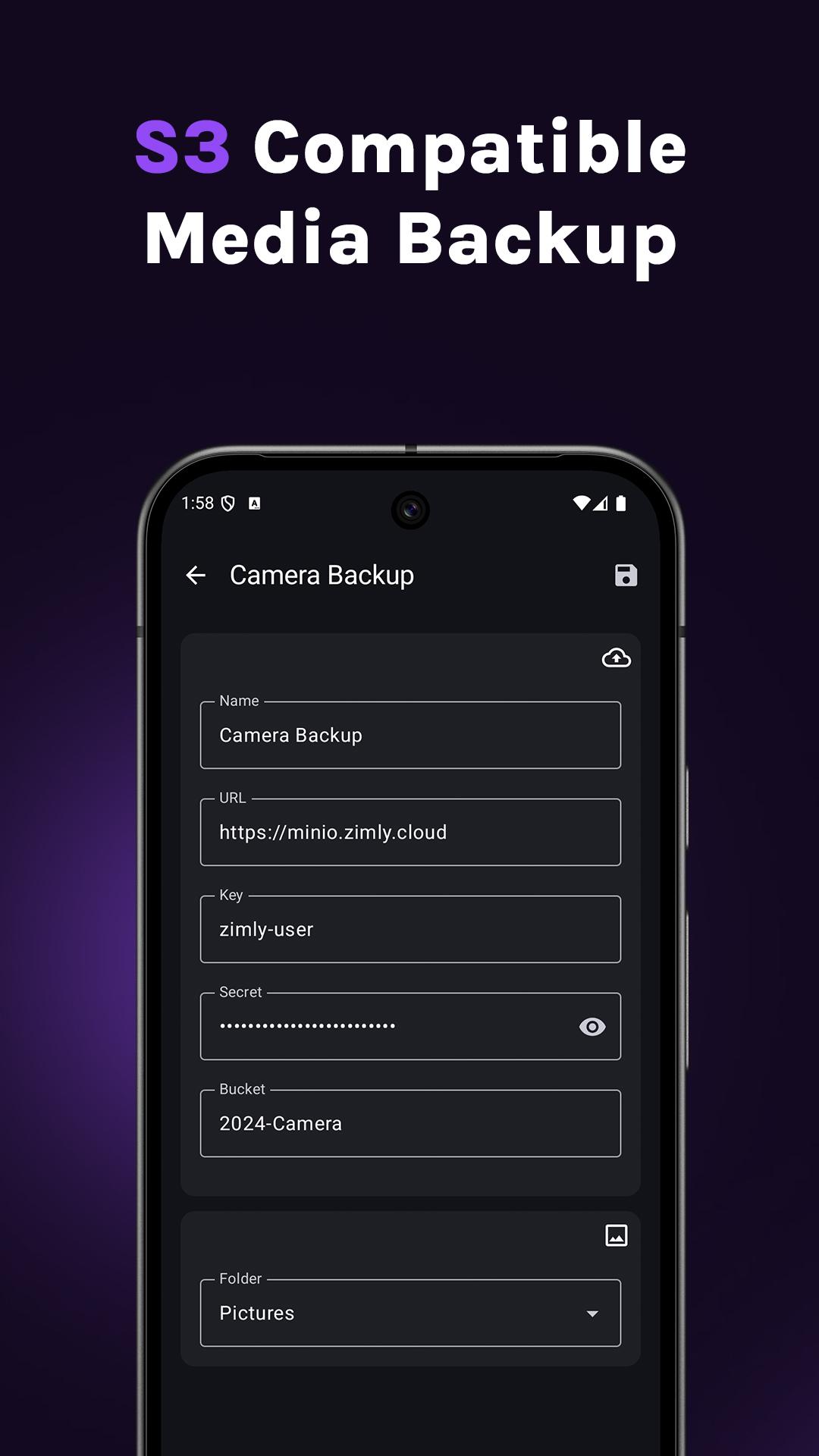 Zimly is an eye-catching, open-source app designed for synchronizing your local media and documents with any S3-compatible storage solution — whether self-hosted using platforms like Minio or cloud-based like AWS S3.