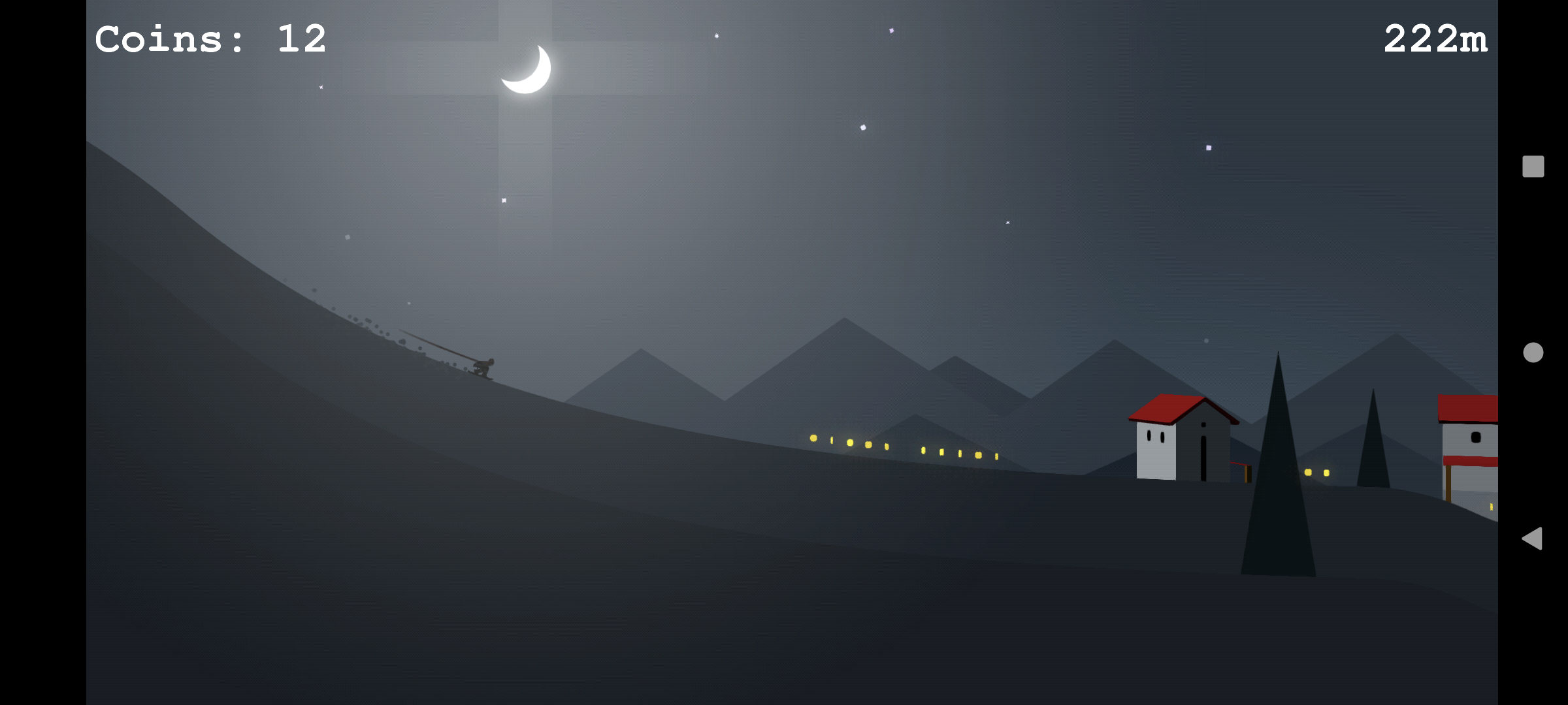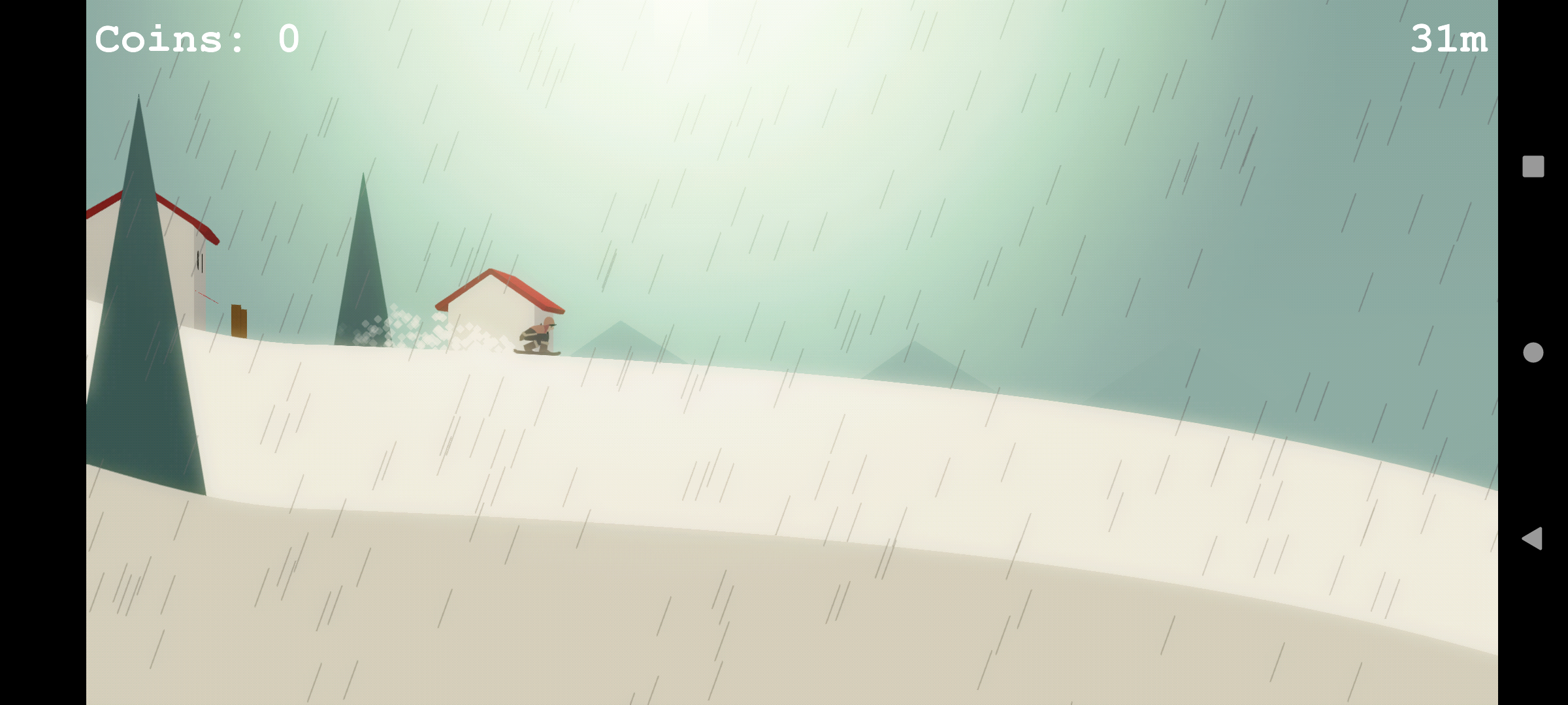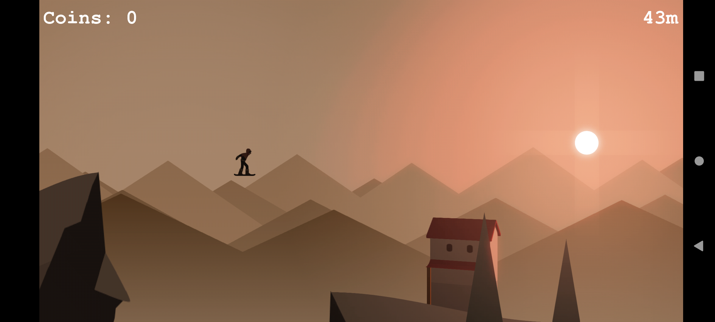 In this game you have to slide down a mountain with a snowboard.