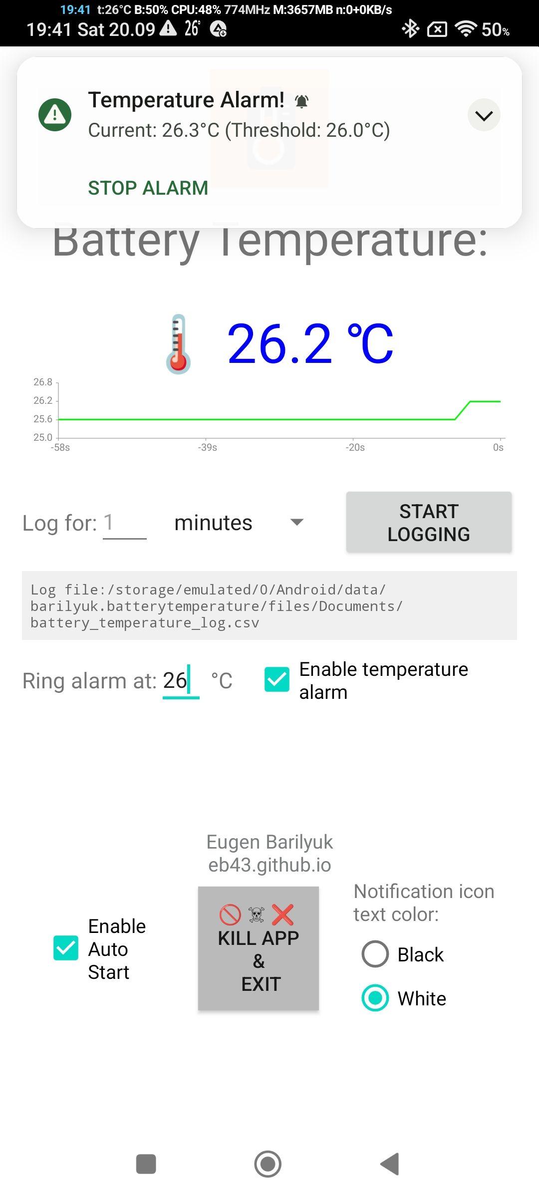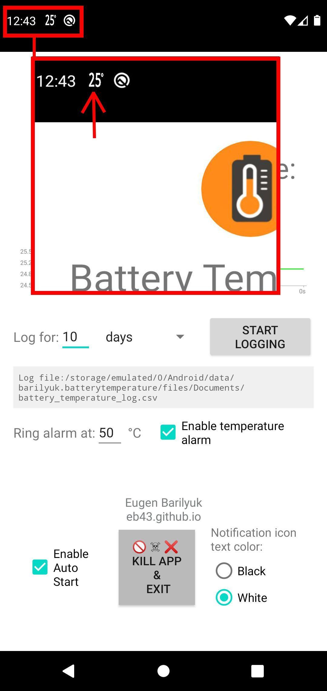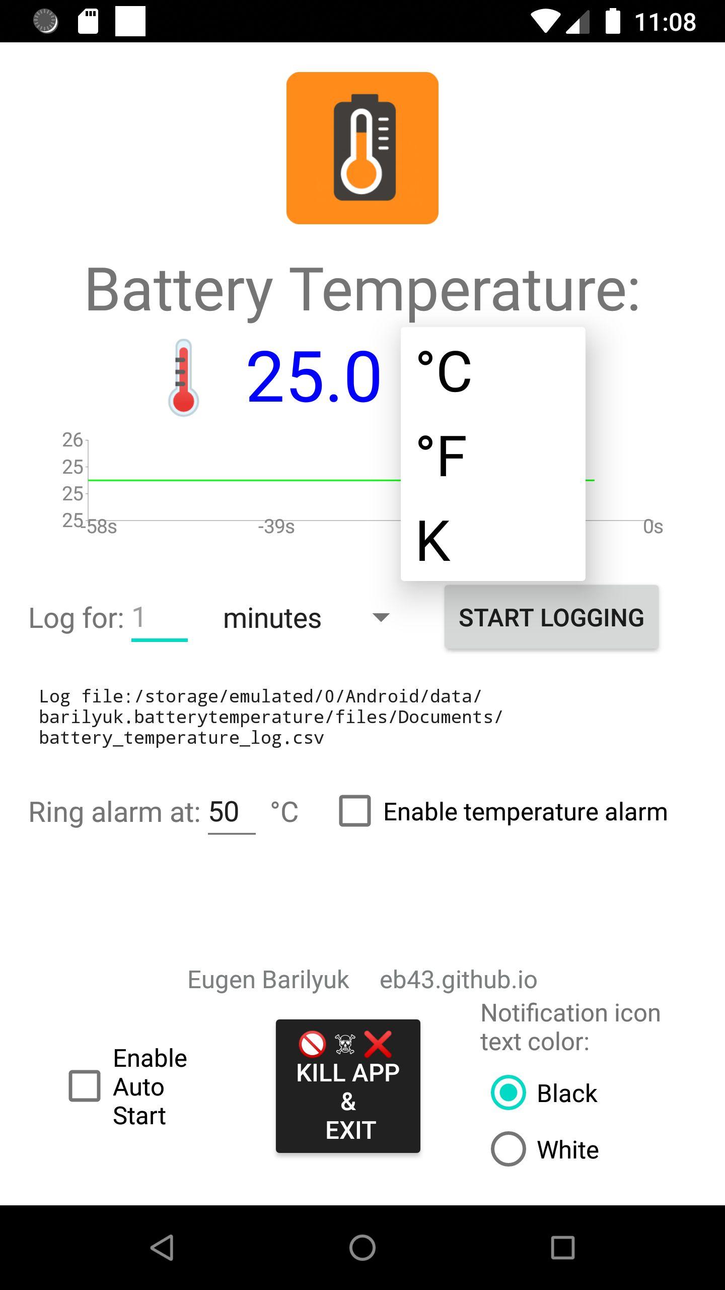 The Android Battery Temperature app is a tool for anyone who wants to monitor, log, and act on temperature data using nothing more than your own smartphone. The app can be both a safety instrument and a multi-purpose temperature monitoring solution.