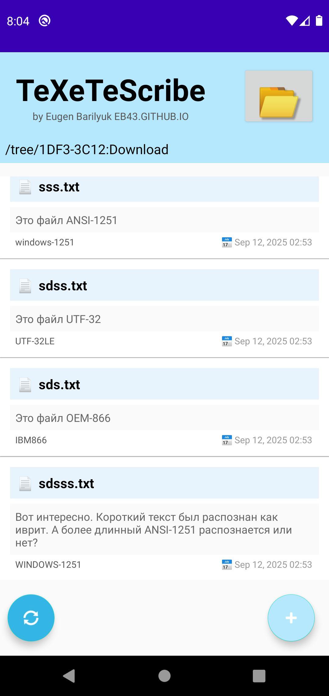 🔠 Text always looks readable. Every text file has its own encoding. Android uses UTF-8 by default, Windows often saves text in ANSI (Windows-1251), old DOS programs use CP866, and classic macOS systems relied on MacRoman. There is also UTF-32, used in some technical files. Most Android apps simply assume everything is UTF-8, which is why older documents or foreign-language text often appear as unreadable gibberish. TeXeTeScribe app automatically detects the correct encoding, and shows the text readably.