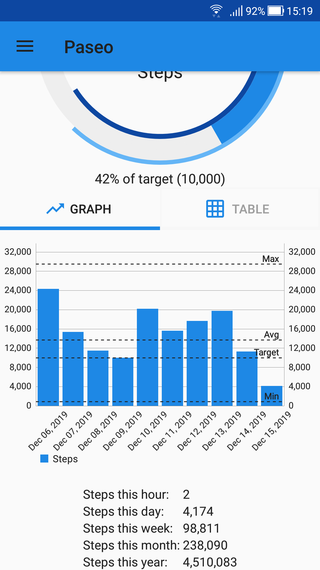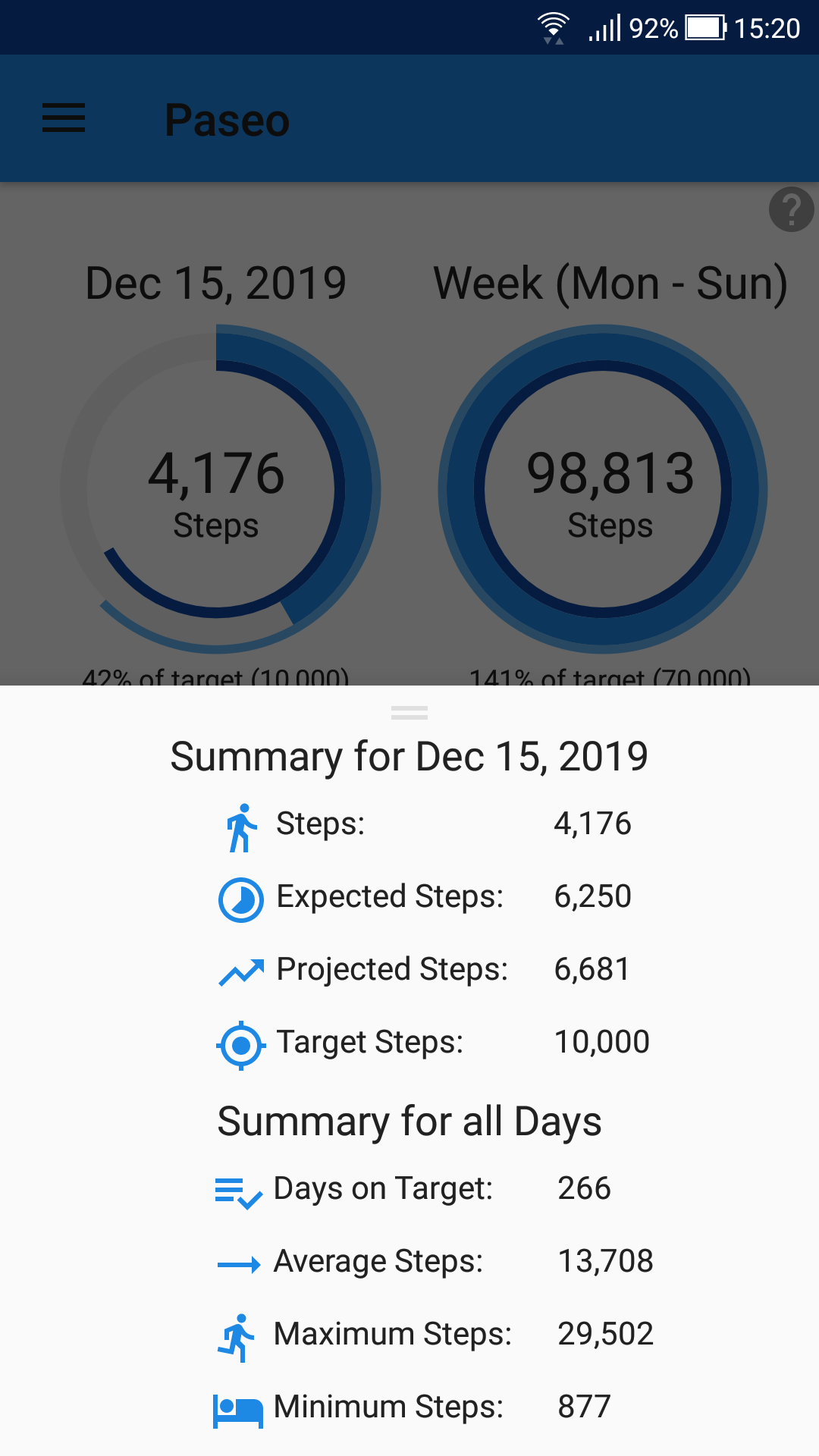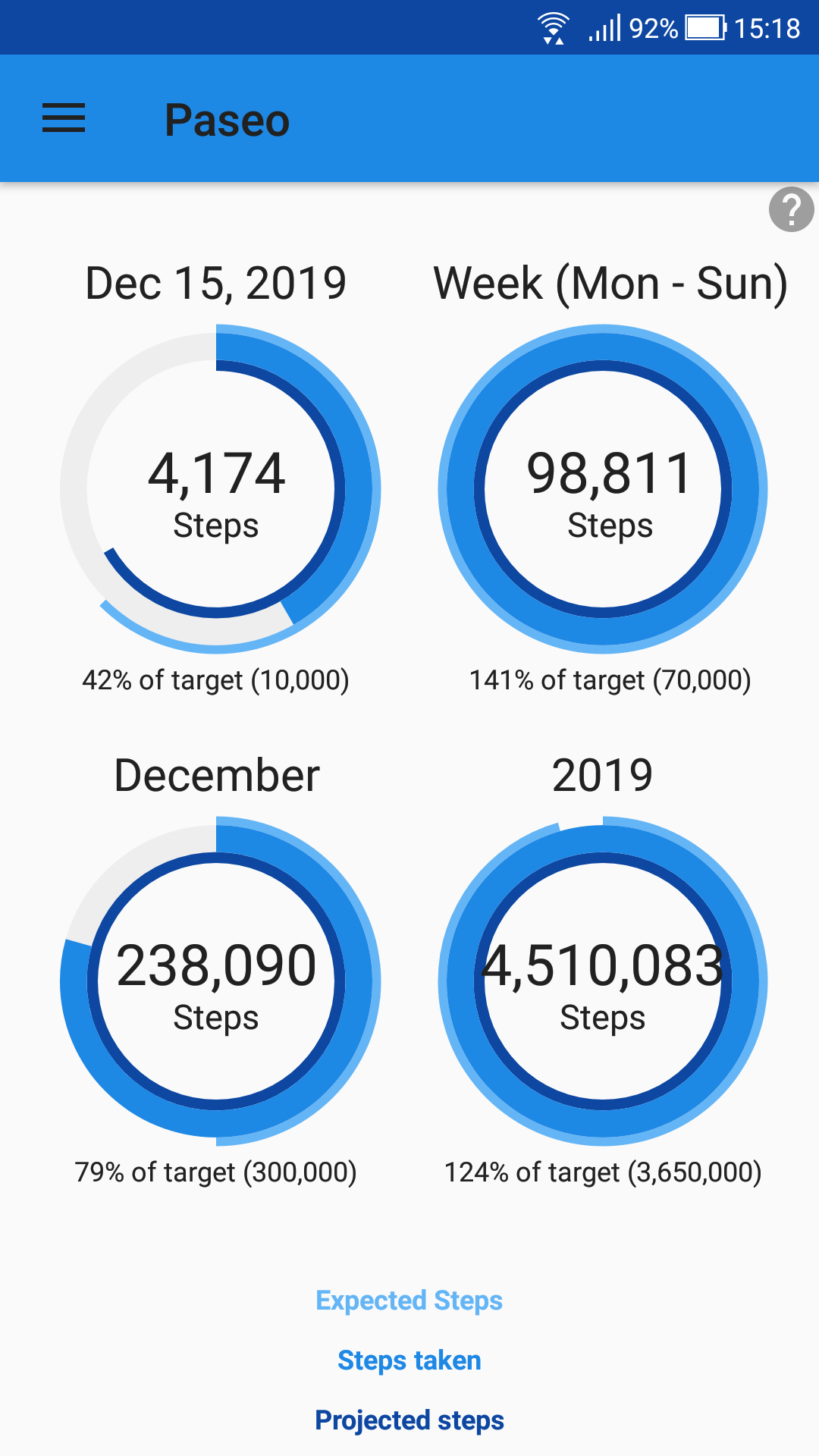 A new widget has been added that lets the user select the text colour (white or black),the steps to display (hour, day, week, month, year) as well as the steps statistic (steps taken, expected steps, projected steps)