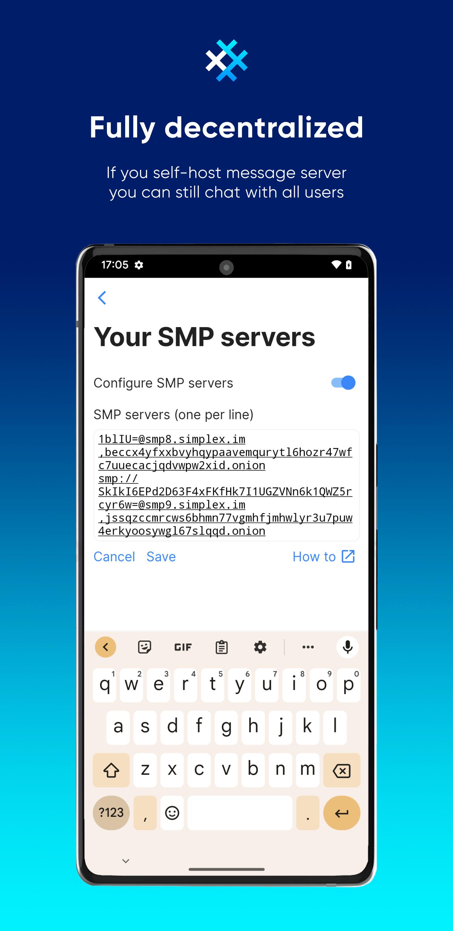 You can connect to anybody you know via link or scan QR code (in the video call or in person) and start sending messages instantly - no emails, phone numbers or passwords needed.