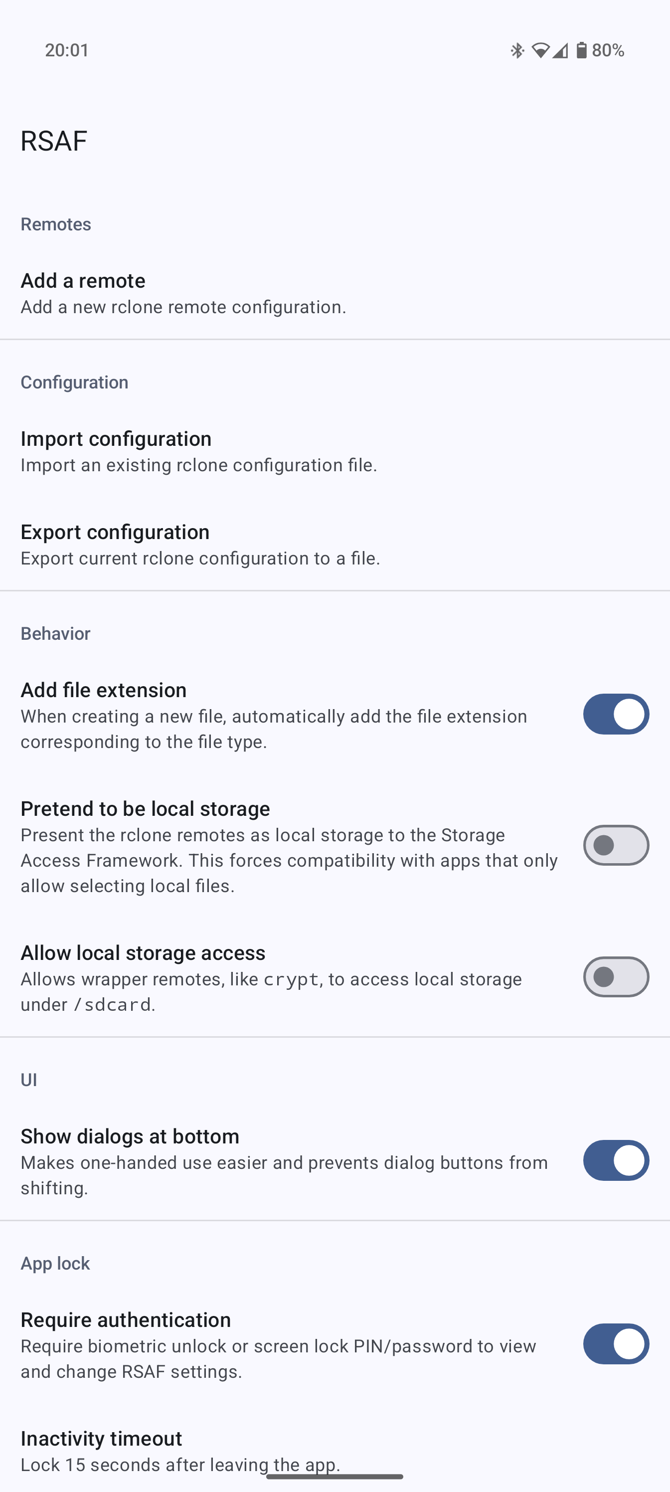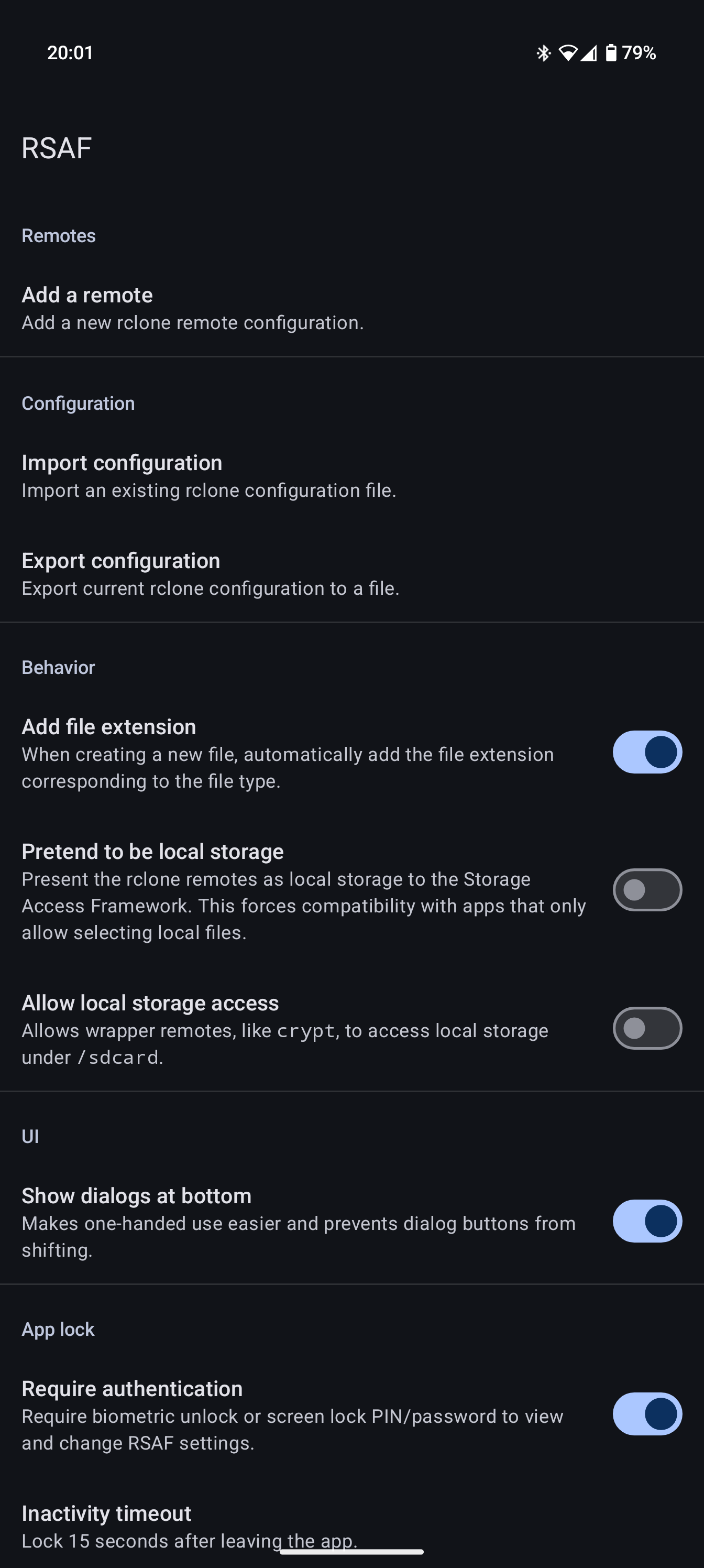 RSAF is an Android document provider for the wonderful rclone. It allows any app that supports Android's Storage Access Framework (SAF) to access remote files via rclone's backends.