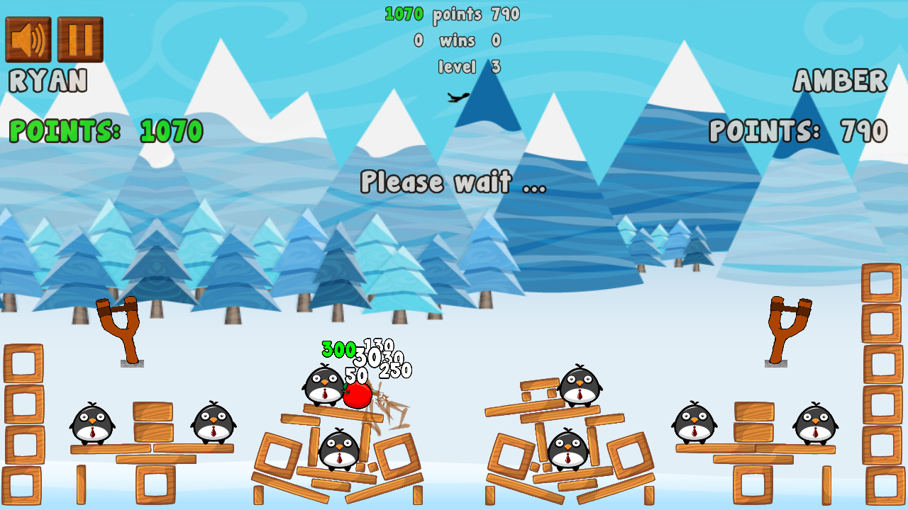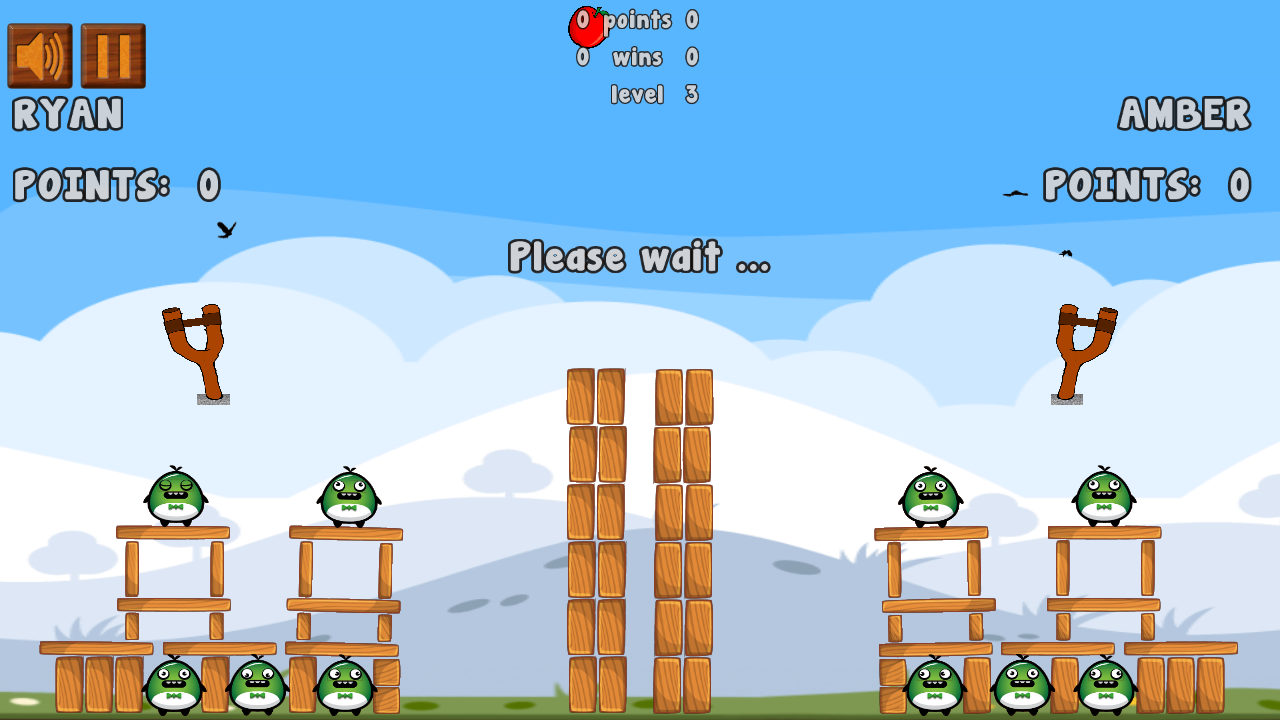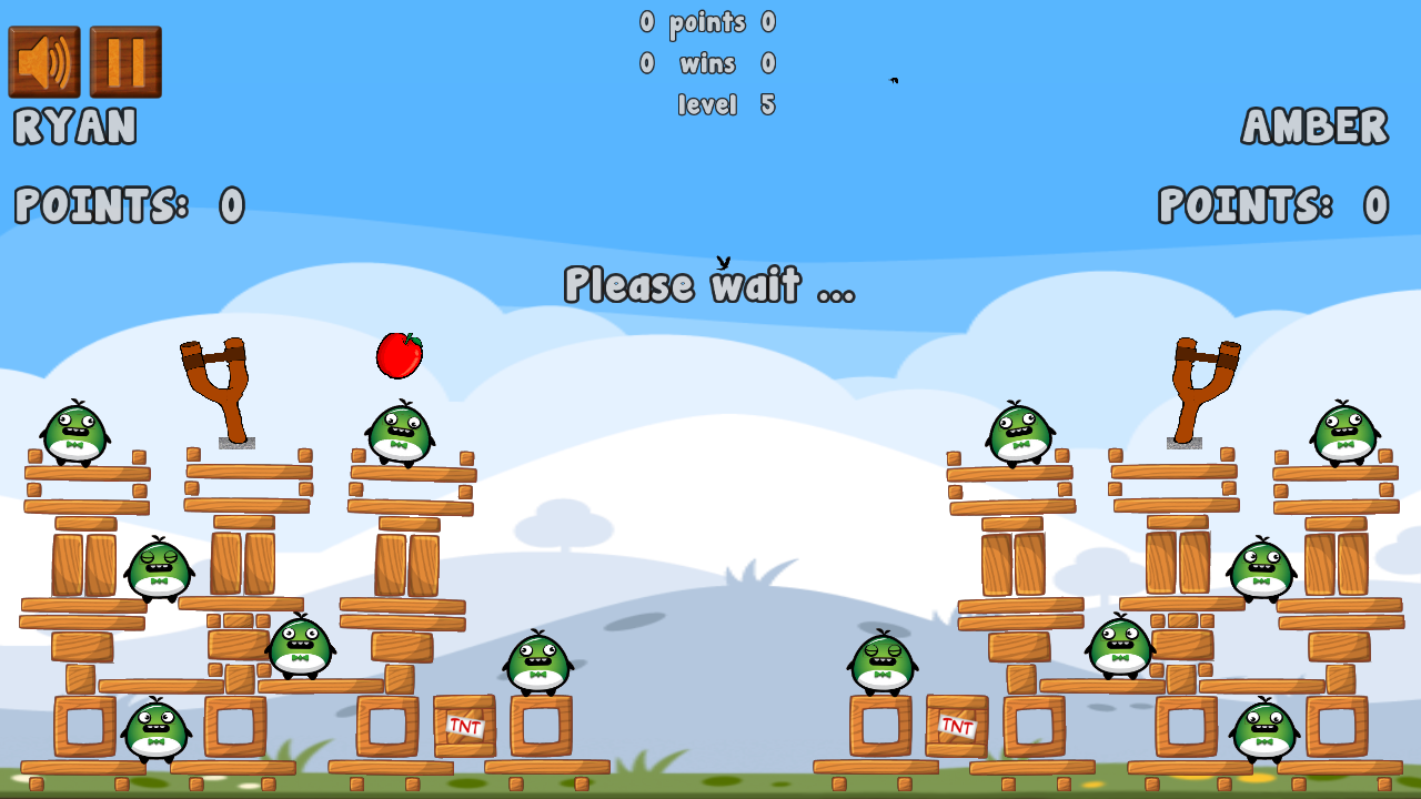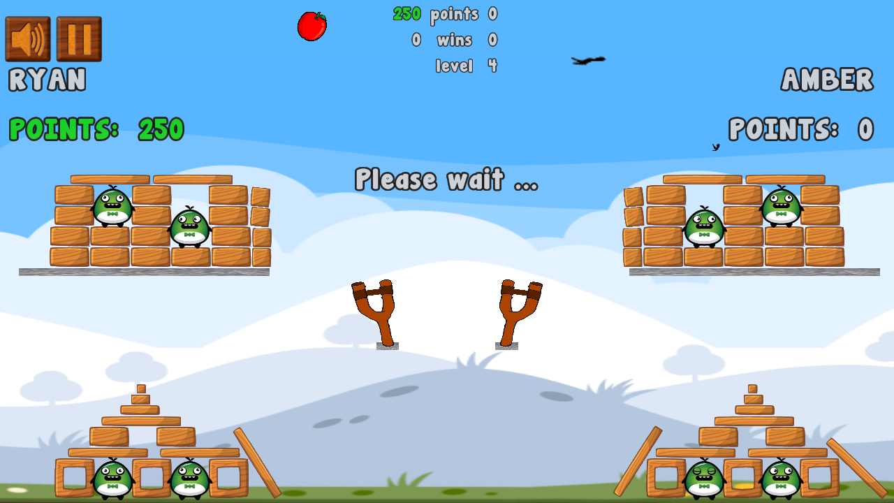 You use a slingshot to shoot with apples. Be first to destroy the whole enemy