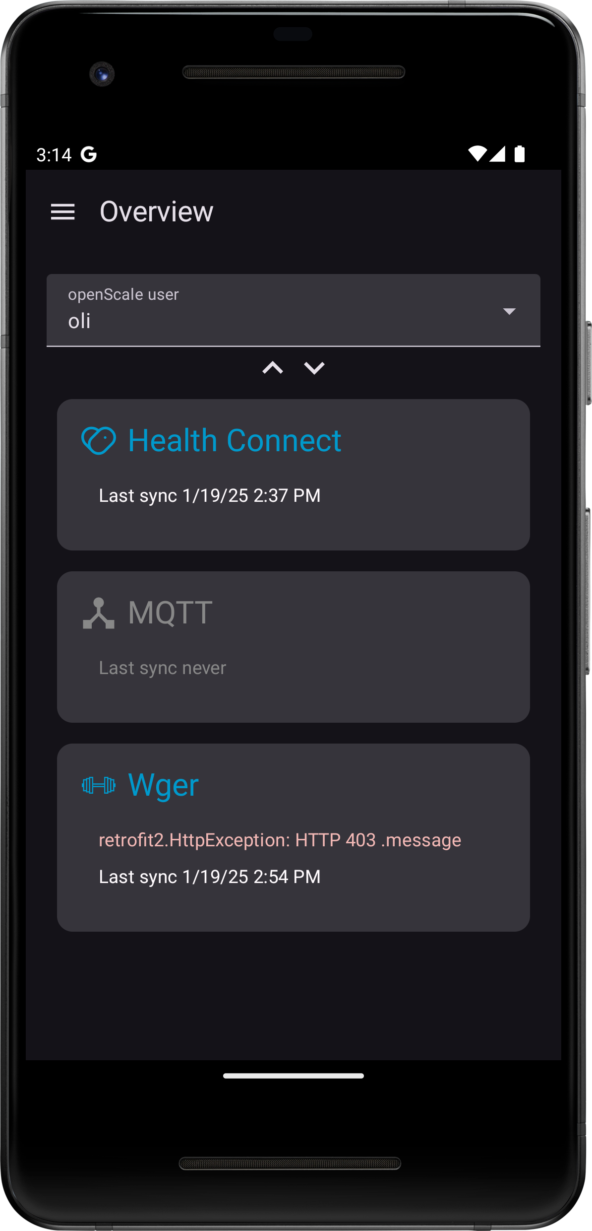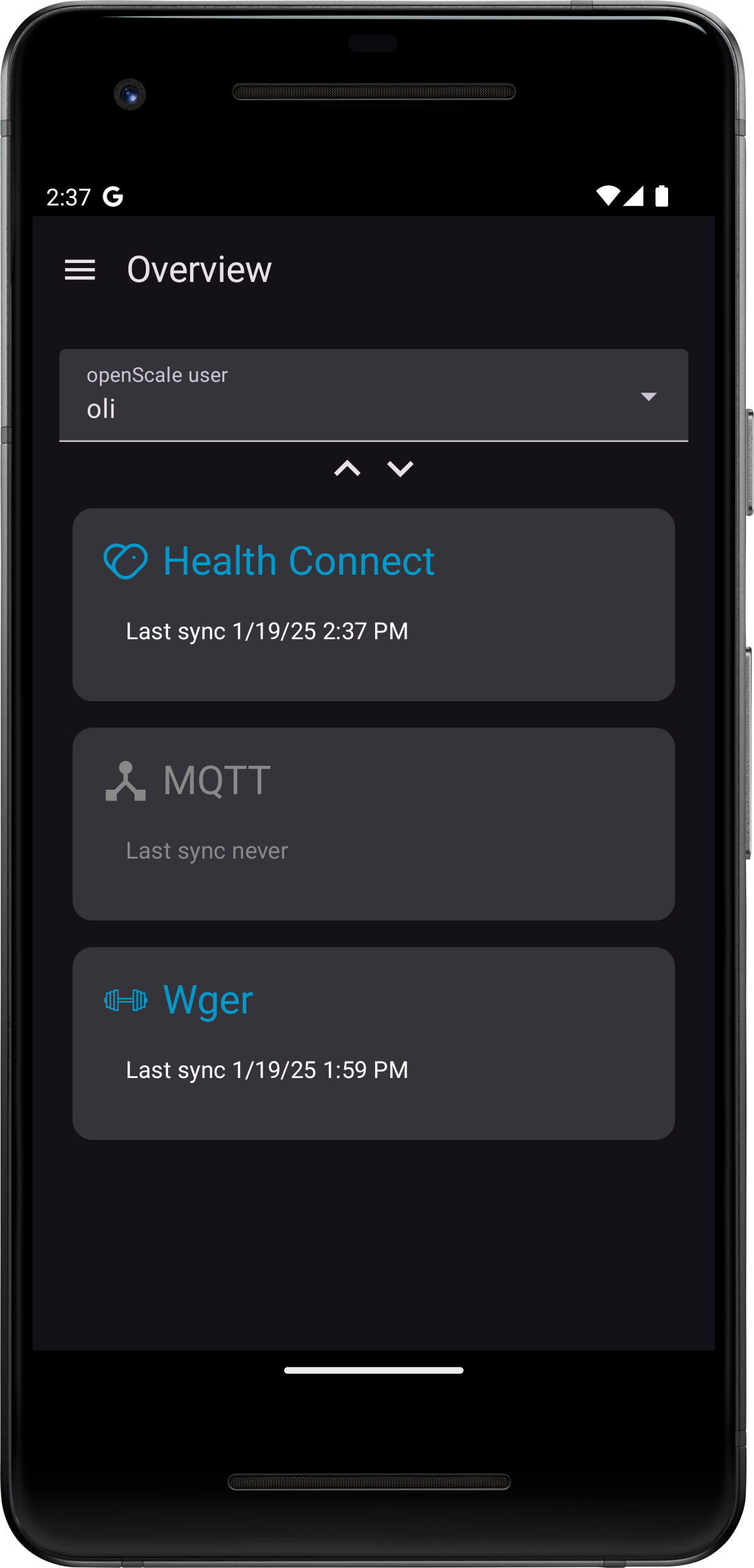 * User-Specific Synchronization: Select the specific openScale user for targeted data synchronization.