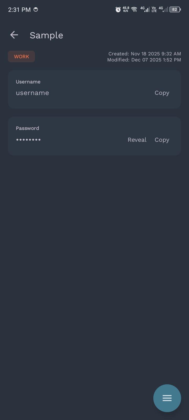 - Encrypted Storage: All passwords are encrypted at rest using AES-256 and stored securely in a local Room database.
