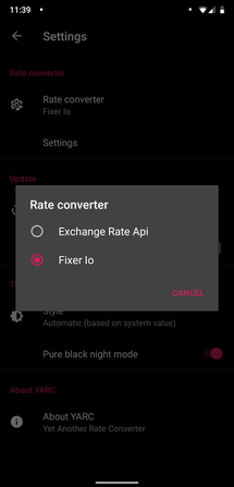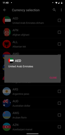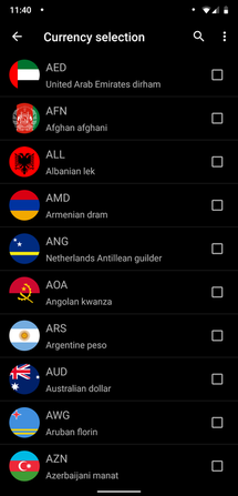 For now, the app supports 2 services (more to come!) : - Exchange Rate Api: free service, usable without any configuration, but with a limited number of currencies - Fixer IO: sign up required on their website (free or paid account), with almost all official currencies