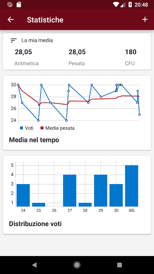 * View statistics (GPA, ECTS and much more) and "forecast" the trend by entering the future results of your exams manually.