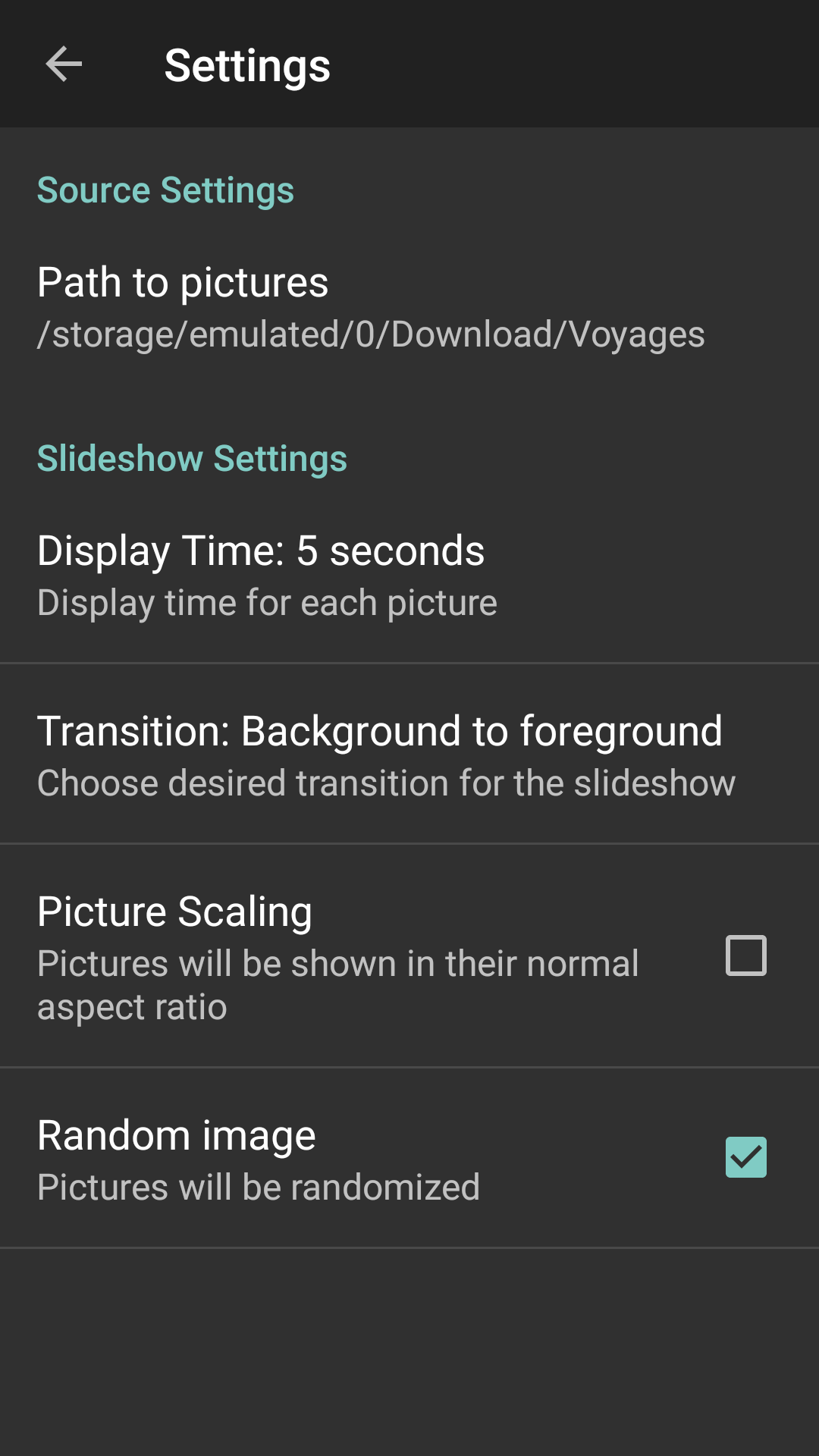 Displays images in a folder as a slideshow with 12 transition types to choose from.