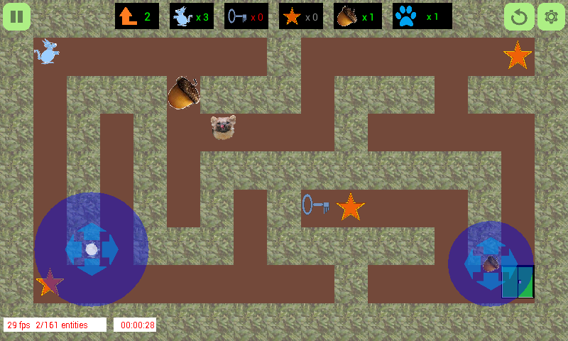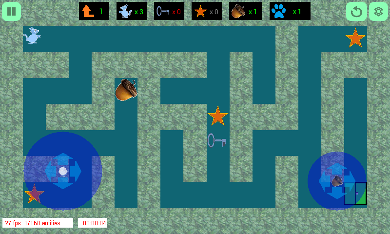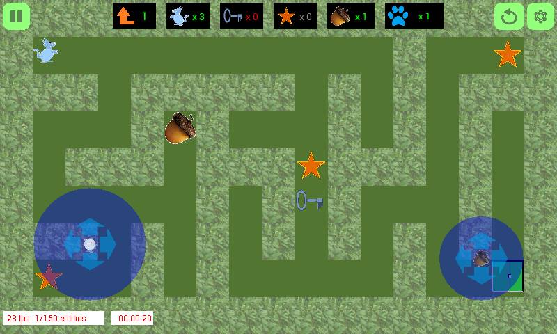 The goal is to walk in the maze and find a way to escape the Squirrel.