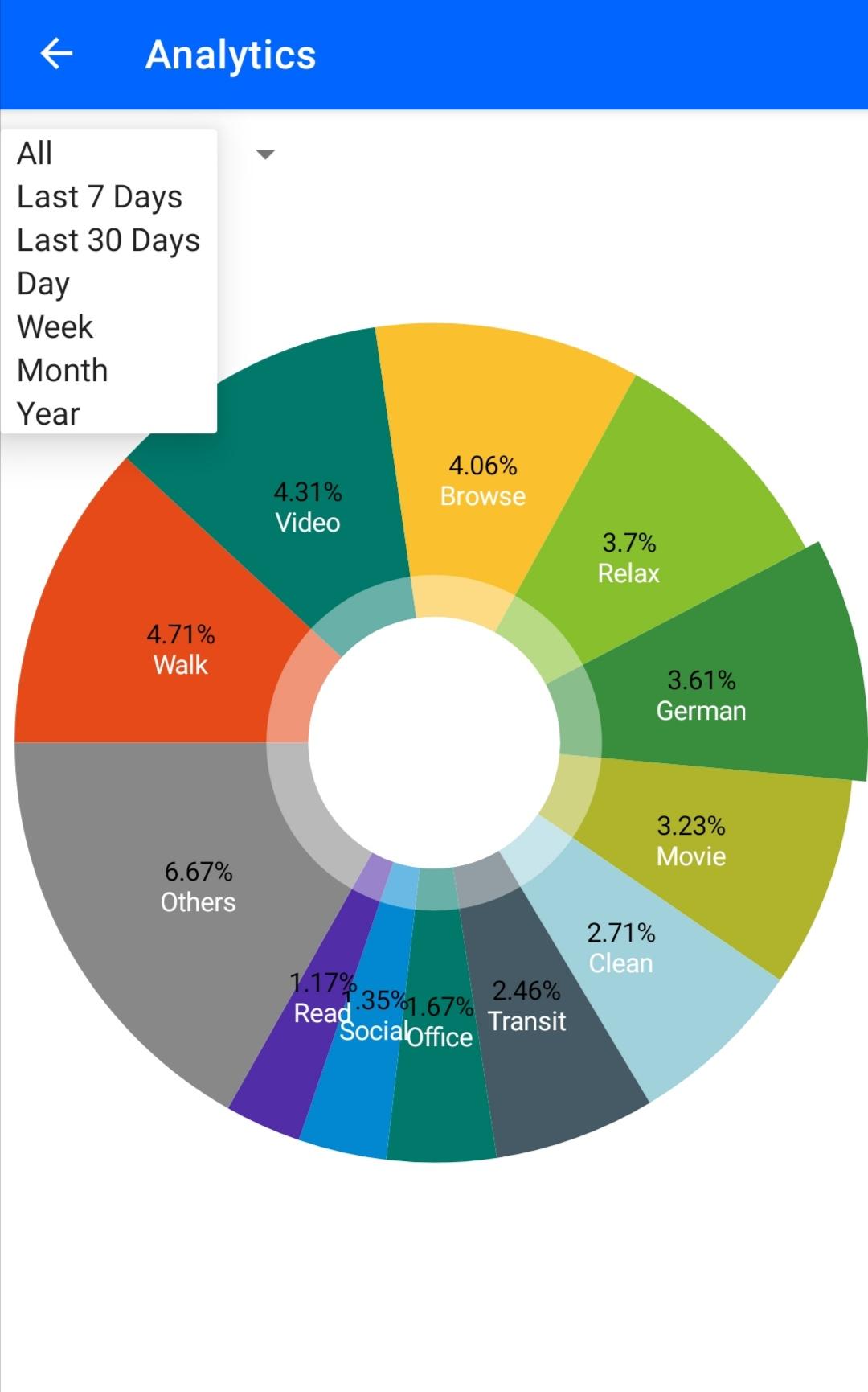 Currently you can record any event by touching on an icon that you create, entering notes and attaching photos. Locations are automatically recorded (after you activate) in the background. Then you can browse your history, analyze statistics in charts, check the timeline of any event, and see your past geo locations. Further more, for easier viewing life from various perspectives, these analytic functionalities are interconnected: check timeline on any pieve of a piechart, review related history about a dot on the timeline, look at geographical passages related to a period of history, and go back to related history on a dot on the map.