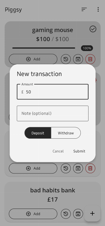 Whether you’re a casual saver or someone who likes to keep detailed records, Piggsy makes managing your goals simple, flexible, and transparent.