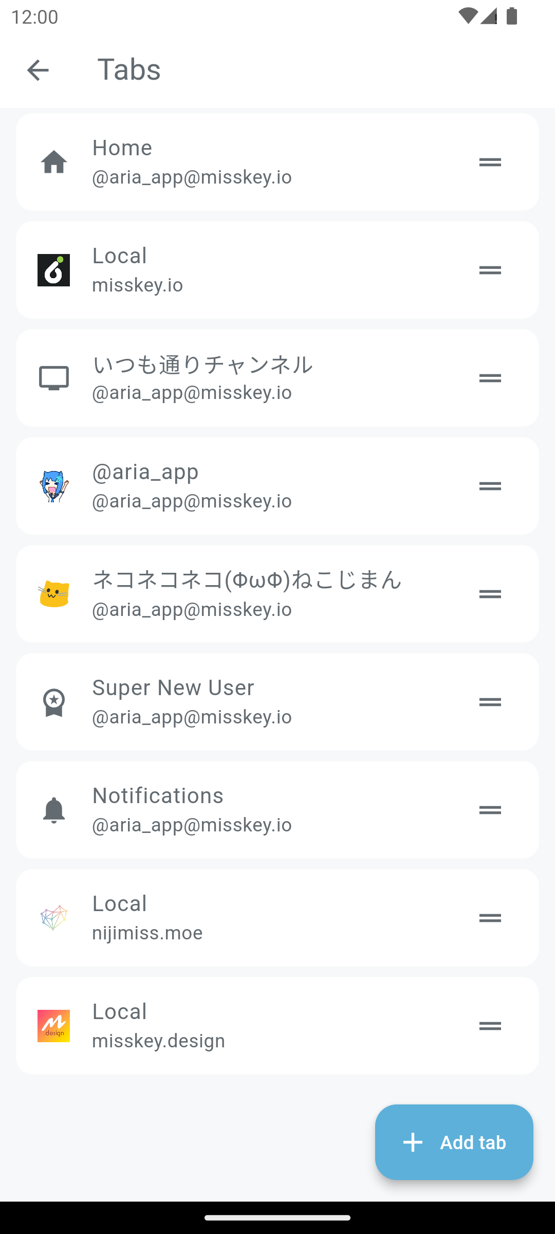 Aria makes it easy to view different timelines by saving the timelines you want to view as tabs. Adding any account's timeline to a tab makes it easy to follow topics across servers.