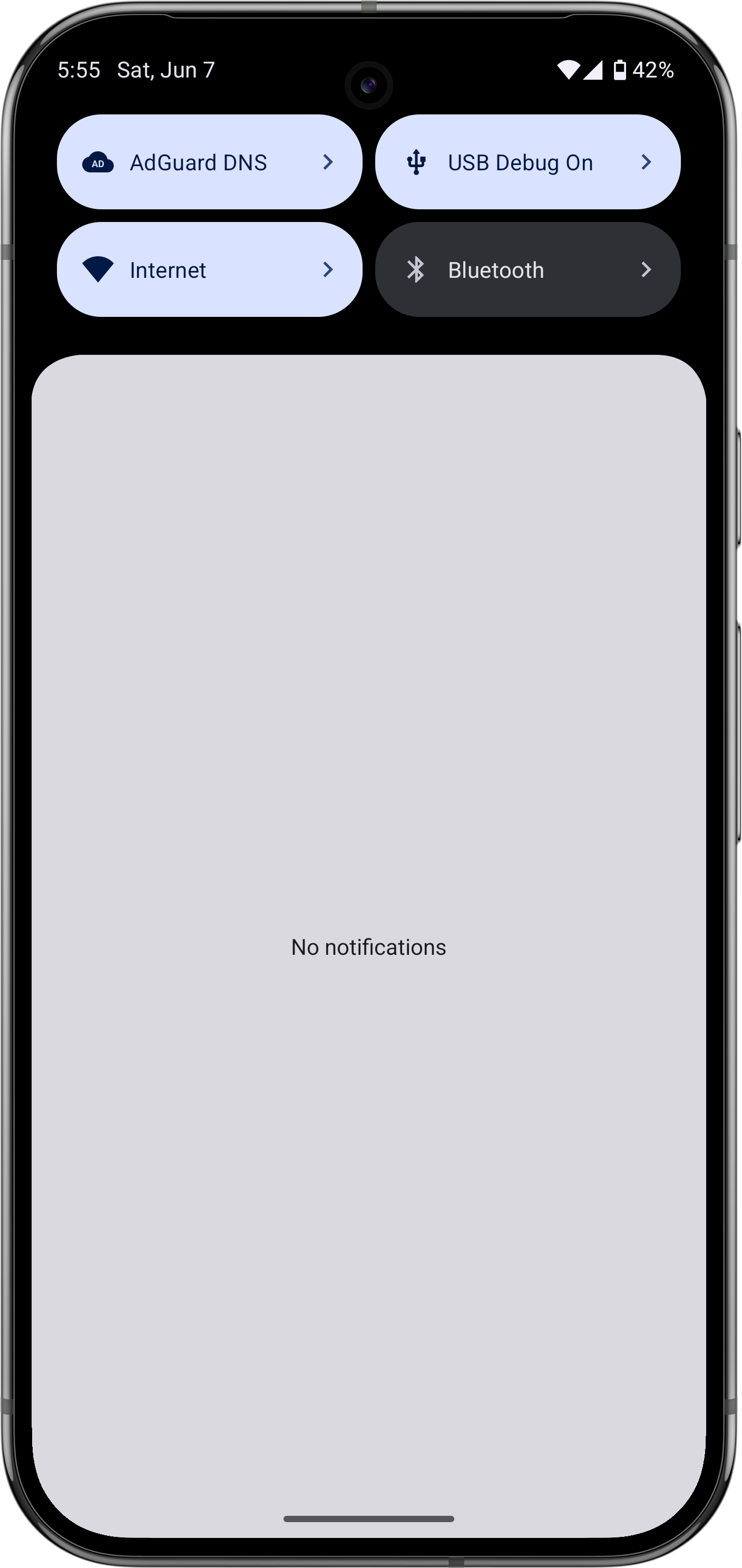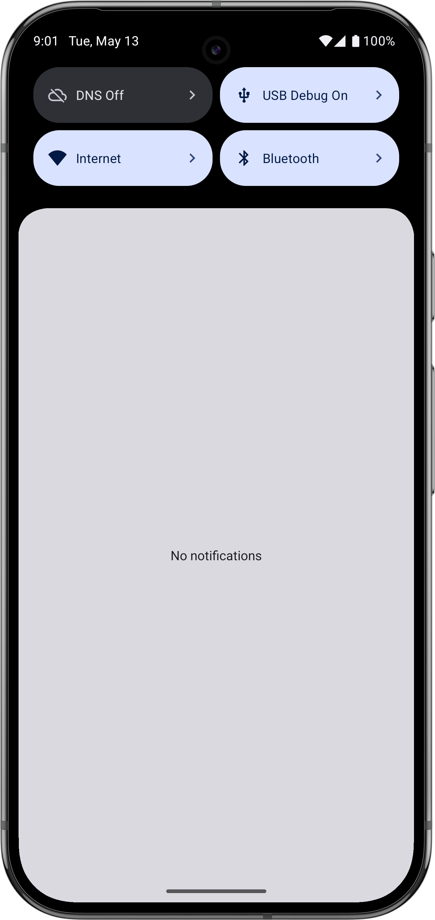 - Add tiles: Add "DNS" and "USB Debugging" to your Quick Settings panel.
