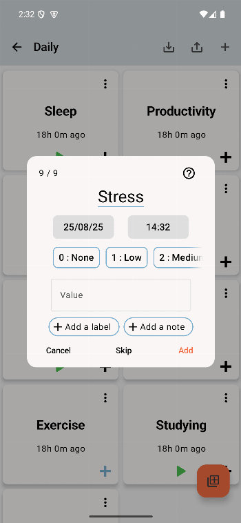 Track & Graph is completely free and open source with no ads, accounts, or in-app purchases. Your data remains private—stored only on your device—and can be easily backed up at any time.