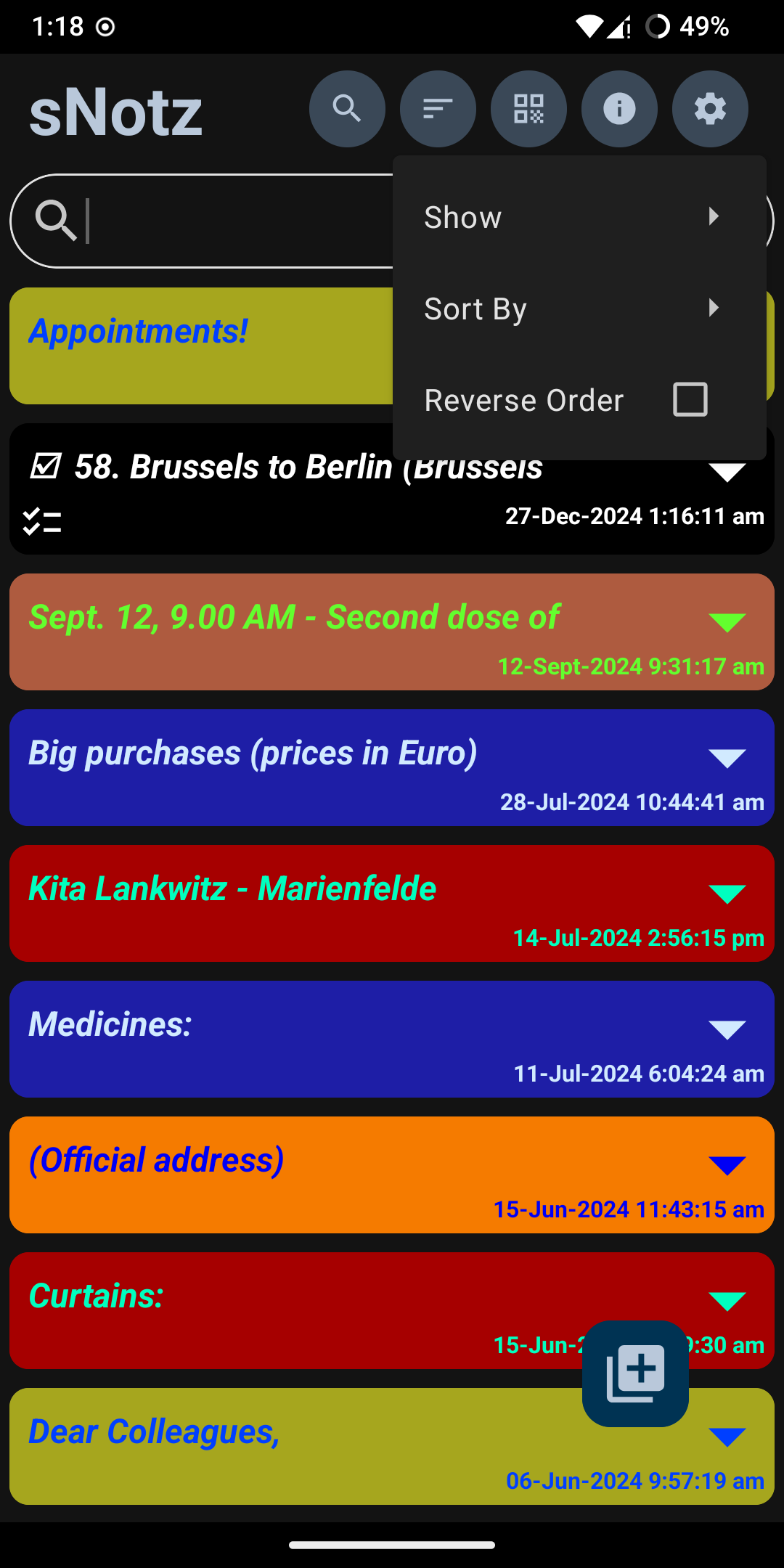 - Sort notes & checklists alphabetically, or by date or background color.