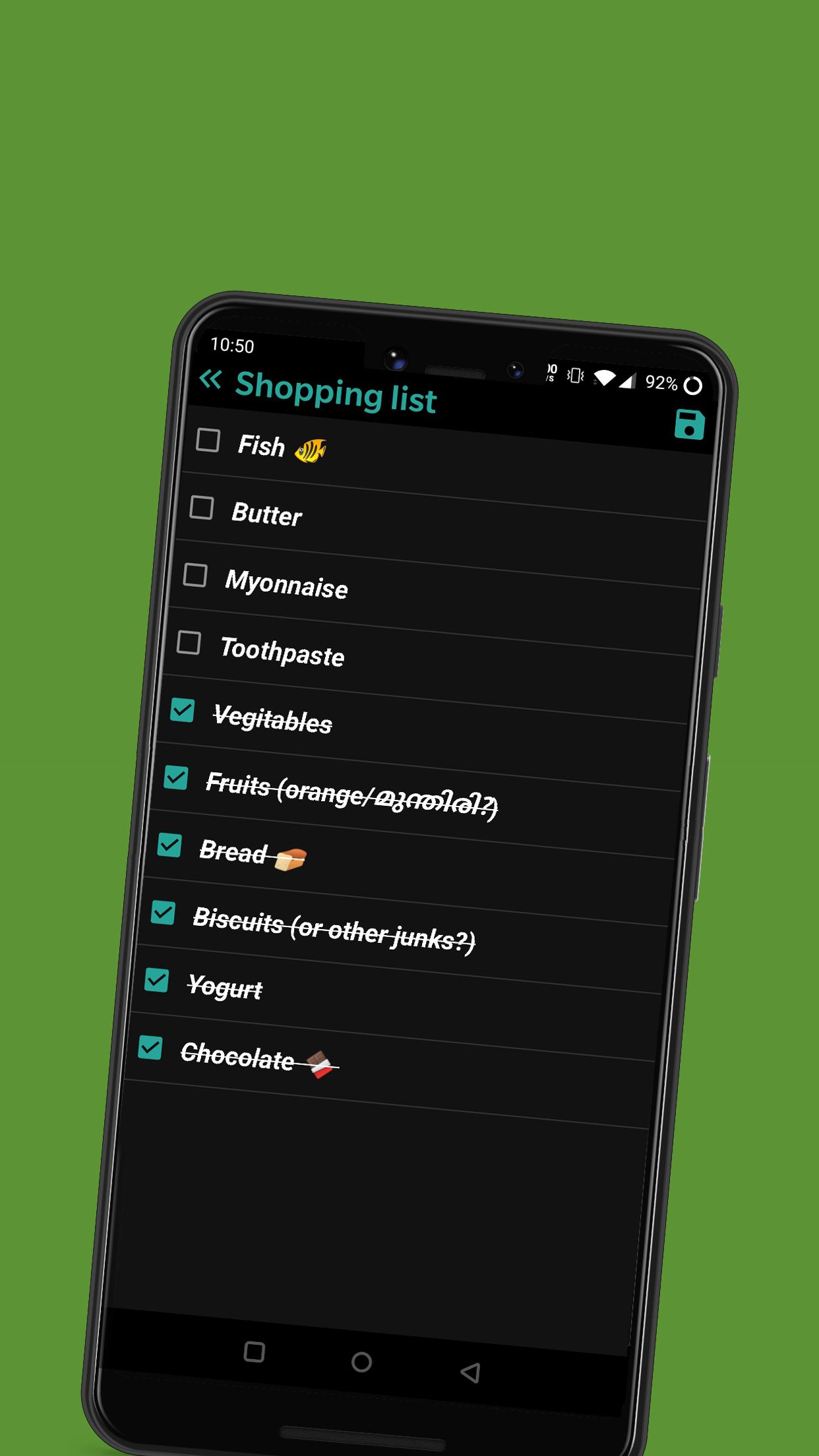 - Swipe (left or right) to delete a note or checklist.