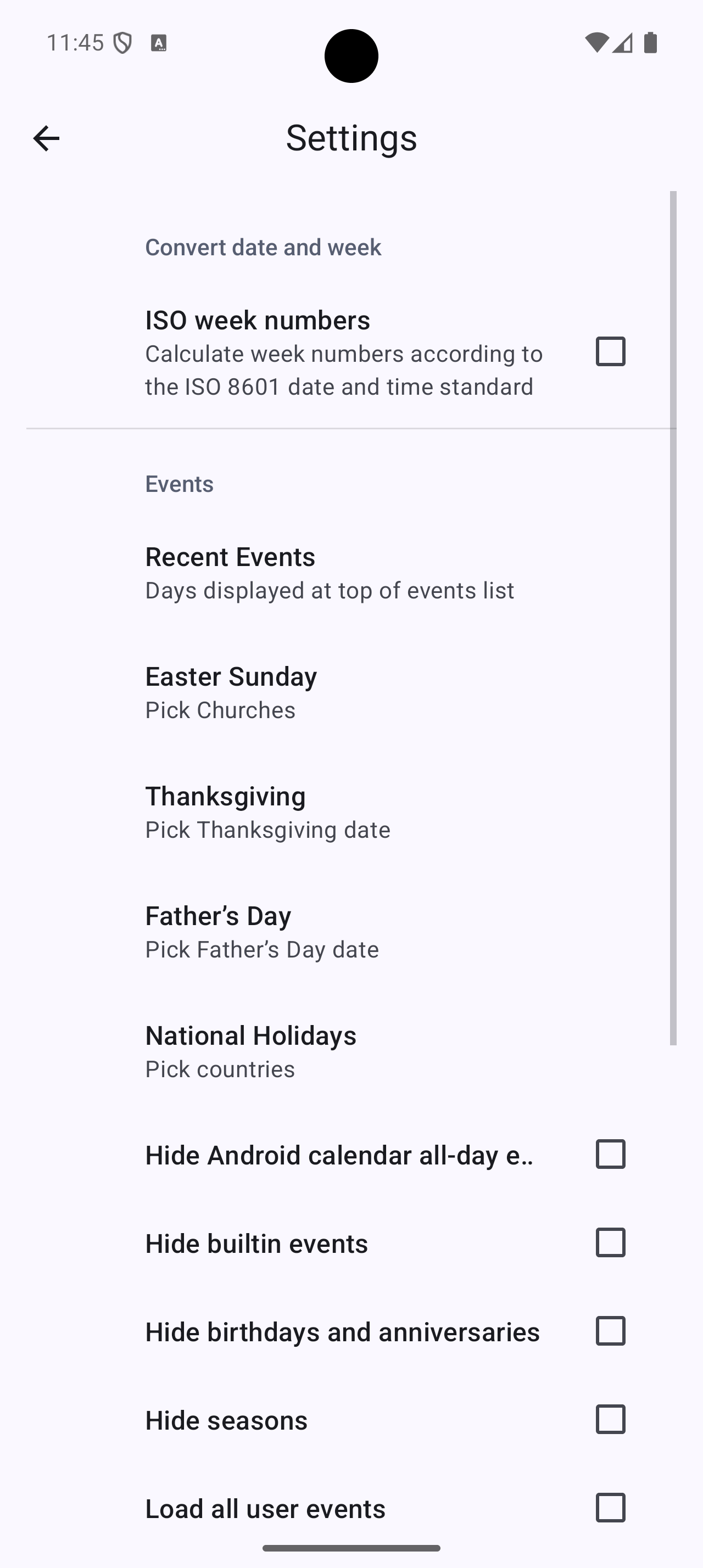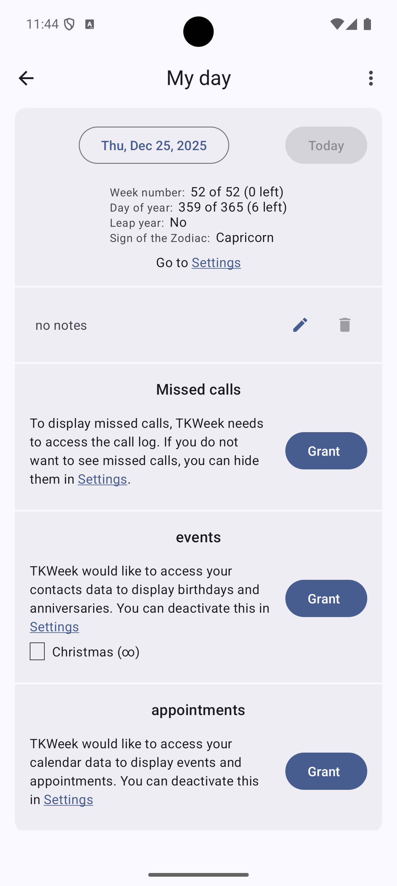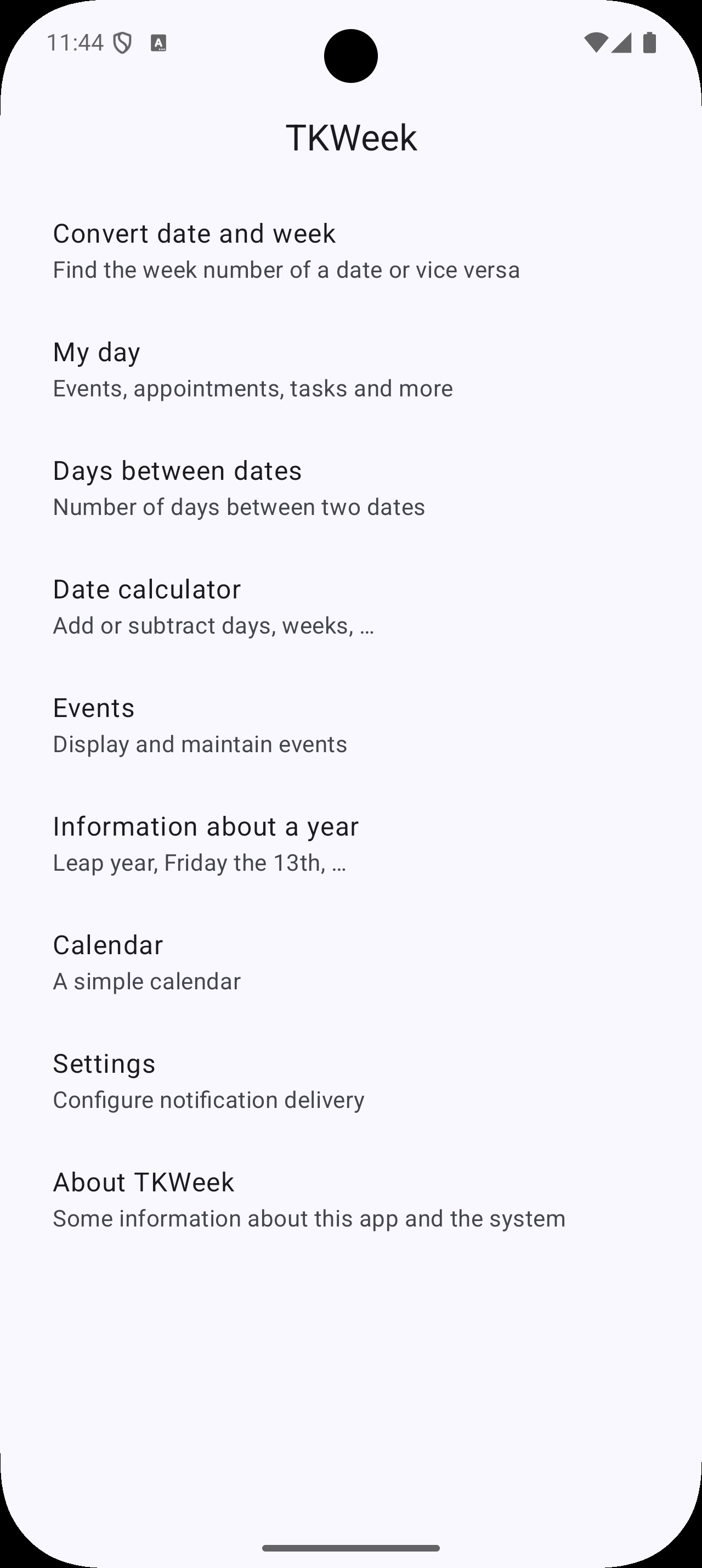 Curious to know when Friday 13th takes place? TKWeek will tell you. The app has many national and international public holidays built in, for example Reformation Day, St. Martin's Day, Christmas, Good Friday, Seven Sleepers Day, Pentecost, Ash Wednesday, and Easter. Some of the other special days TKWeek knows: Ice Saints, Valentine's Day, Mother's Day, Halloween, St. Patrick's Day, Earth Day, All Saints. And there are so many more included.
